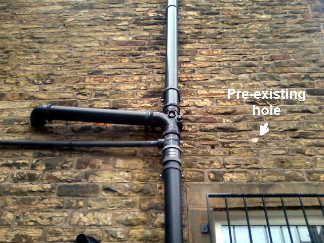 If I want to add a new 40mm pipe (bath waste) in the position shown in red, it looks like I can't easily add a new strap boss because there's no virgin pipe to attach it to, because that funny coupler thing is in the way, yes?