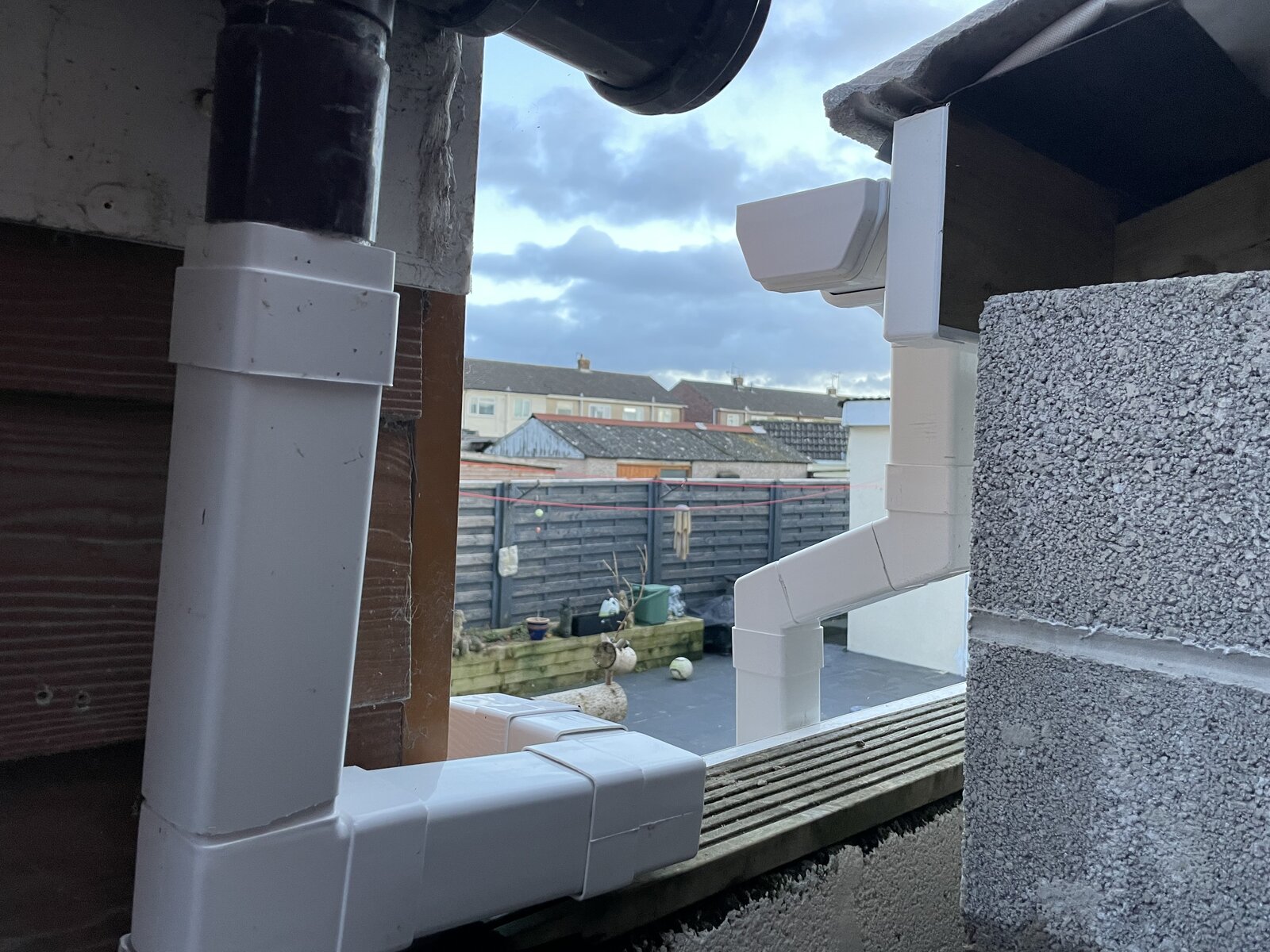 As per the image below I am looking at joining my white guttering to my neighbours brown guttering (permission given).