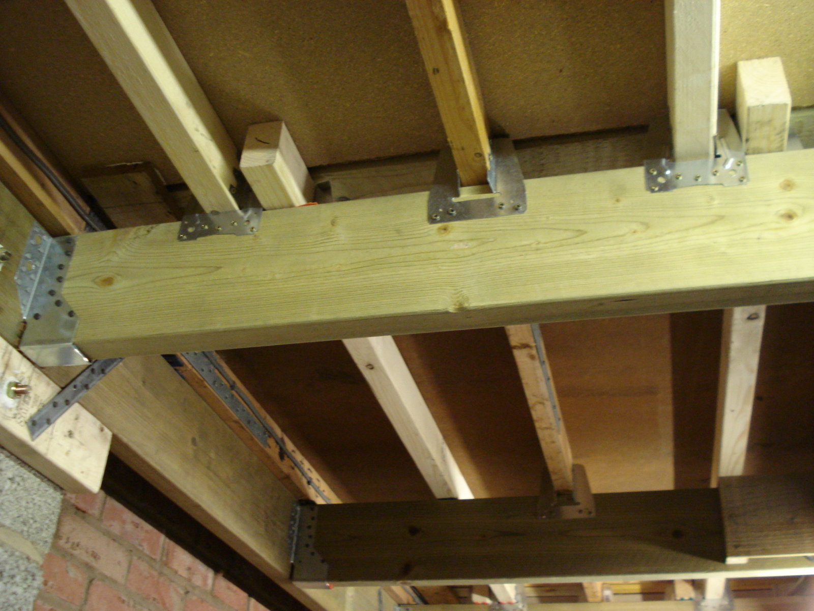 I have a 6m x 3m single garage which I want to board out. I don't think the roof structure is very strong so wanted to add two joists across at 2/3 intervals to the width to add strength for any weight I want to put up there.