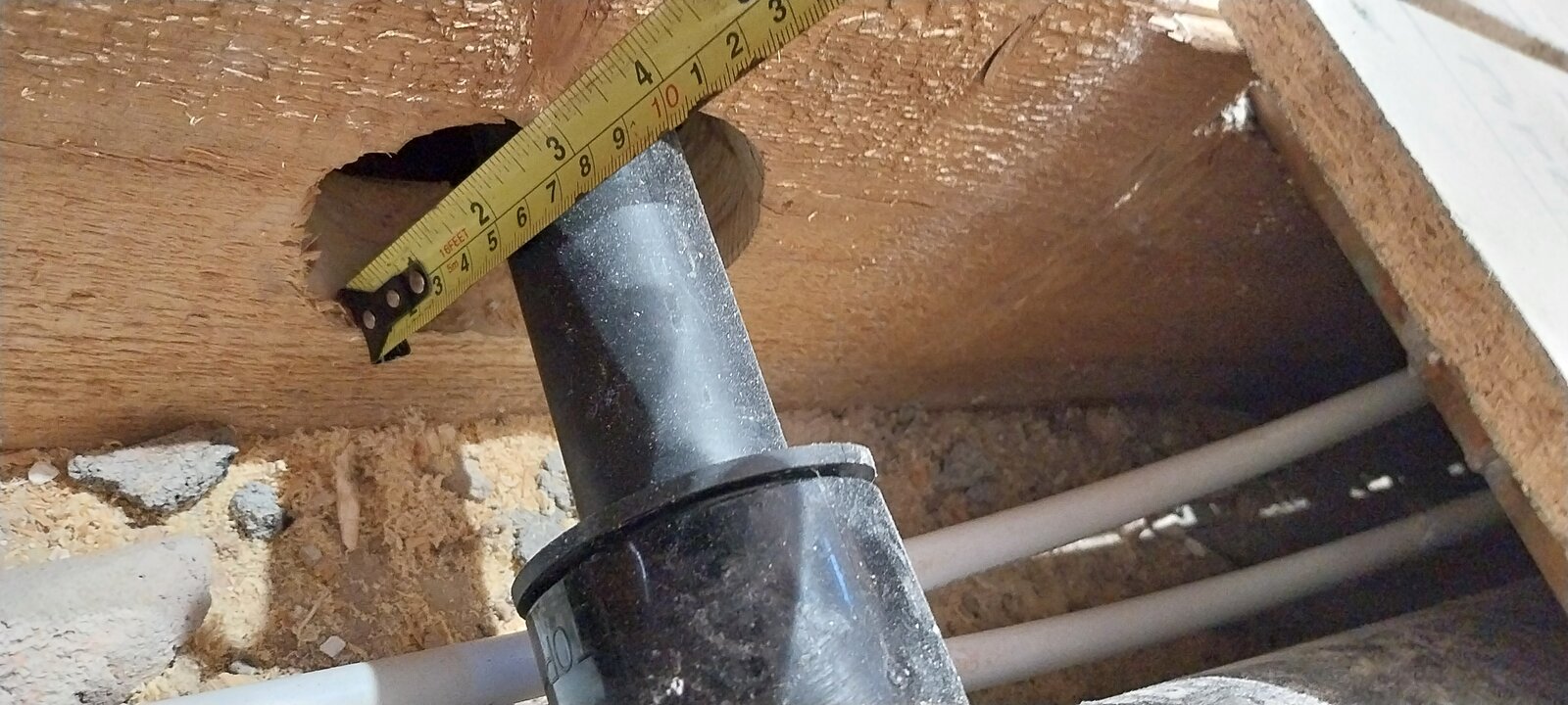 Hope this is the right place, so a bathroom fitter did this. 100mm diameter, cut with a 70mm saw but took a few goes presumably due to the 40mm pipe being fussy. 200mm depth joist and 2800mm length. I believe that the horizontal location is ok, however the diameter simply couldn't ever be. Over in the plumbing forum a plumber suggested that a joiner would be the right person to get an idea whether or not it can be repaired and how? Any suggestions?