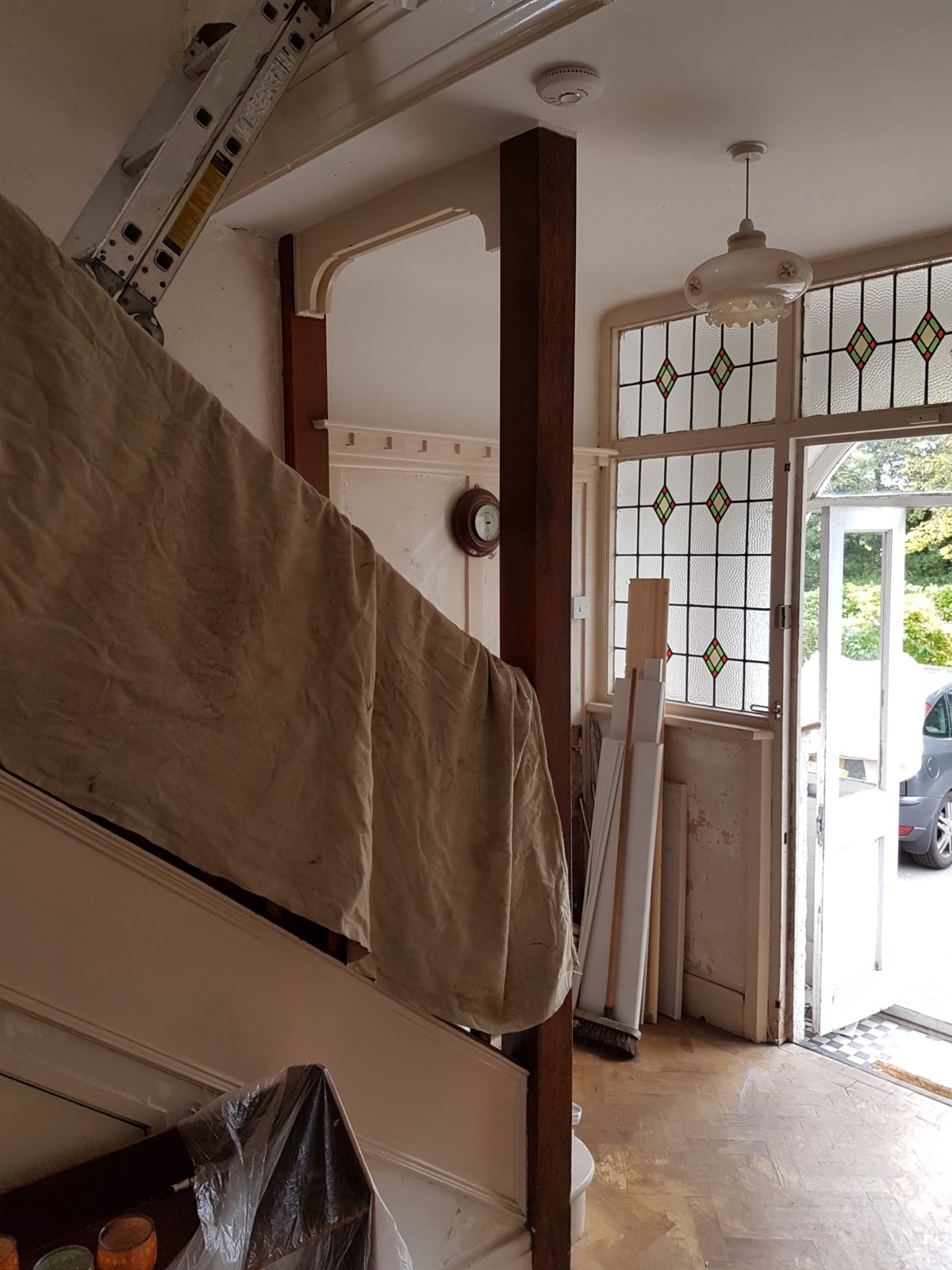 Massively undecided at the moment about what to do with our current front door setup. There's a naff wooden porch on the outside.
