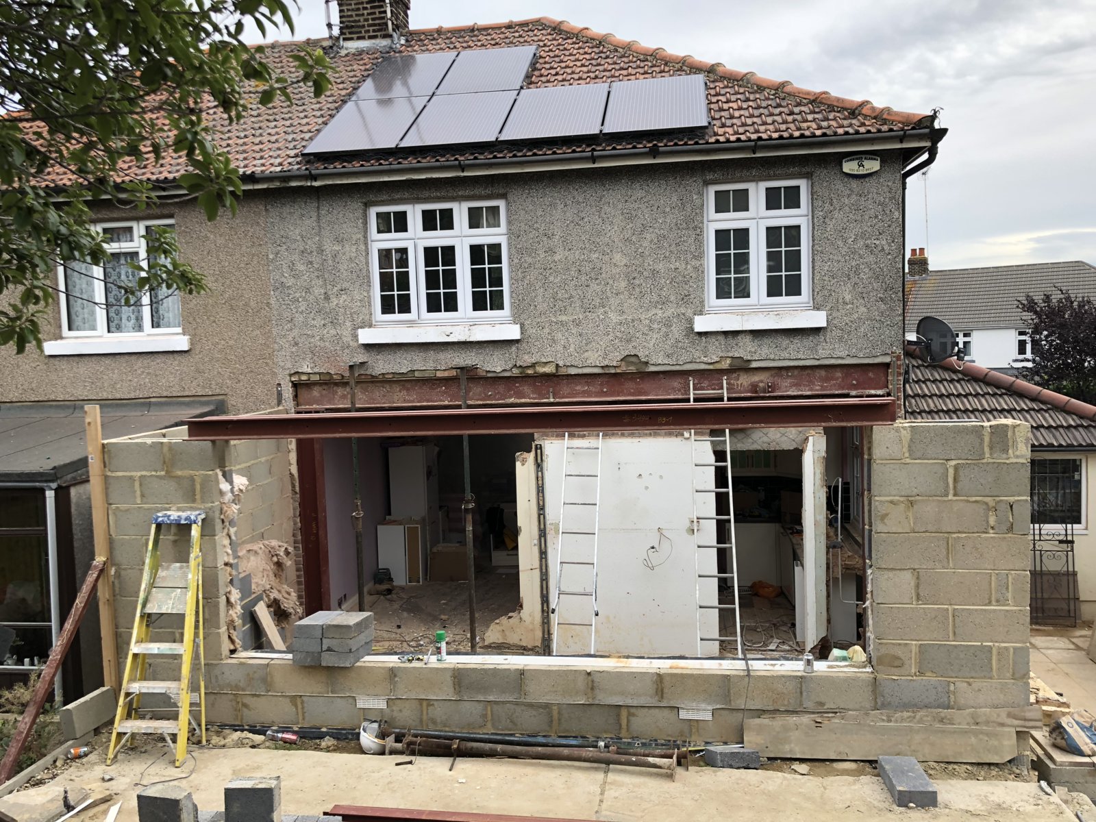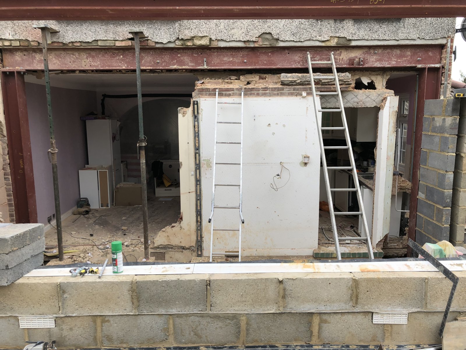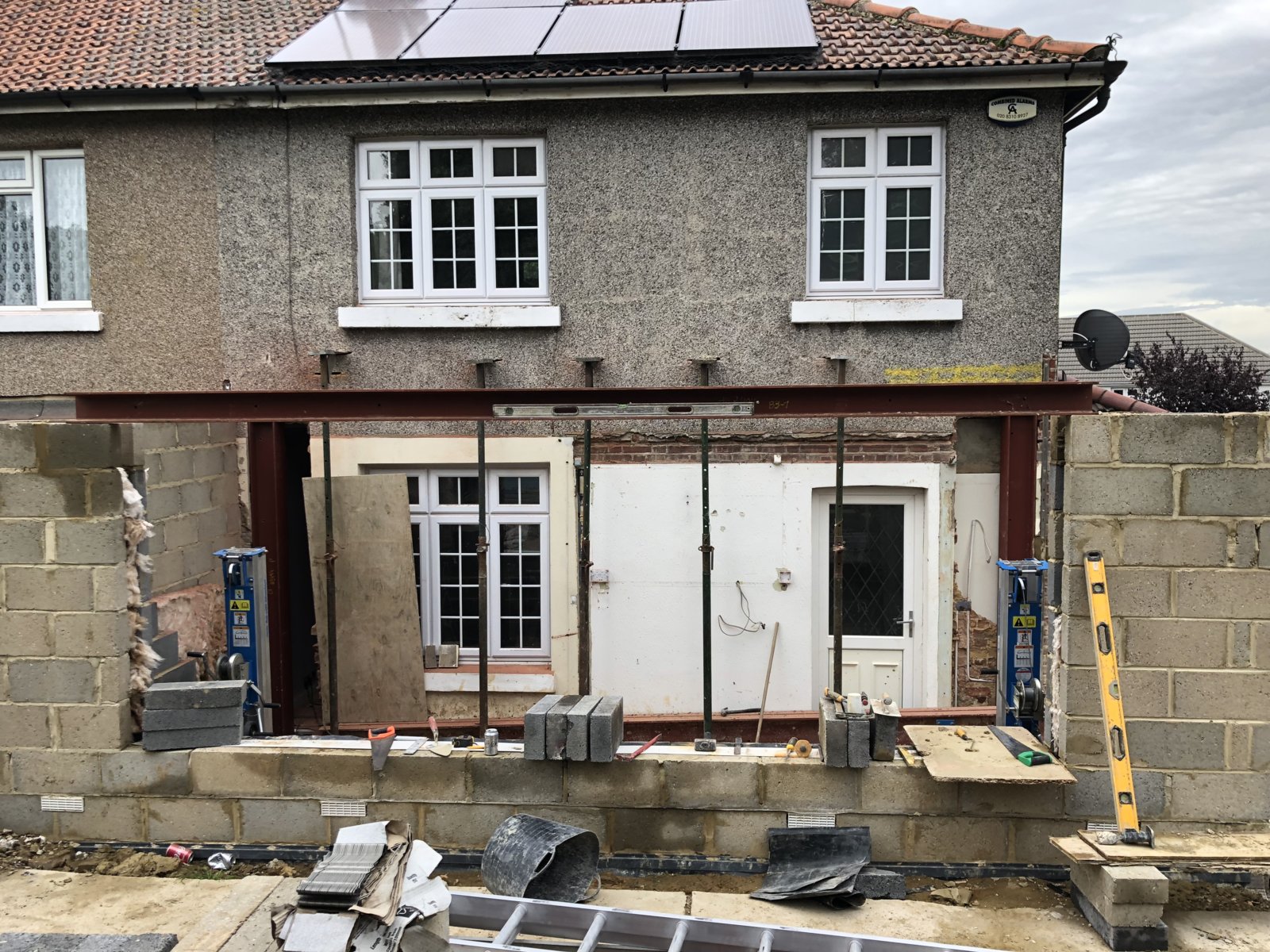 Right guys, the beam is finally in and brickwork added between the beam and the rest of the house.