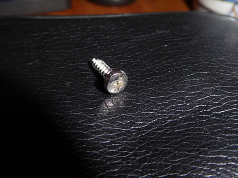 pix of :---CH180A -----"plastic" screw (both removed from front under rubber "feet"---underside of CH180A showing both screws removed from front and hole at rear at the bottom of which is the mystery fixing