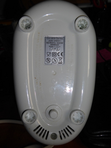 At wits end - Kenwood mini chopper CH180A PROBABLY needs new nylon gear wheels (available as a spare) but i cant get into it. Beneath the two "front" rubber feet are two crosshead plastic screws - easypeasy - but at the other end, just under where the mains lead goes in, is a ? - its bright and shiny and down a hole in the plastic about as deep as the screws at the front - not an allen key head - not a hex head - doesnt seem to be a sunken triangulatr head - what is it? -not a crosshead and doesnt seem to be one of those strange tiangular things with tags standing out ??? - i dont usually have this trouble - all suggestions gratefully received