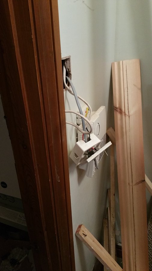 The plug socket for the washing machine and dishwasher has been placed in the unit under the sink directly below elbows in copper piping. I had asked for the switches to be placed above the worktop.