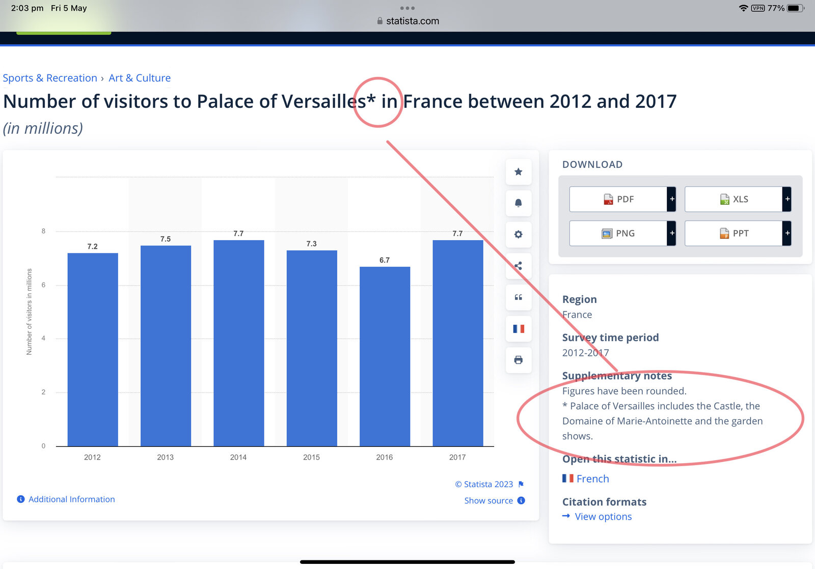Feck all to do with monarchy you figure twisting pillock. Versailles sits in 2014 acres, Buck house sits in just 39. 50 times the capacity but only 18 times the visitors. Buck house open to visitors for just a couple of months of the year, Versailles is open every day of the year with free entrance to the absolutely massive park and gardens . Do you think those facts might have some bearing on the number of visitors per year?