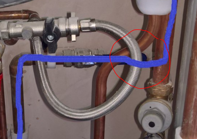 The extra kitchen connection/ diversion, may just be a balancer as I can see that the kitchen's cold water supply stops short from going into the expansion tank. But am worried that our water is contaminated as not directly from the mains.