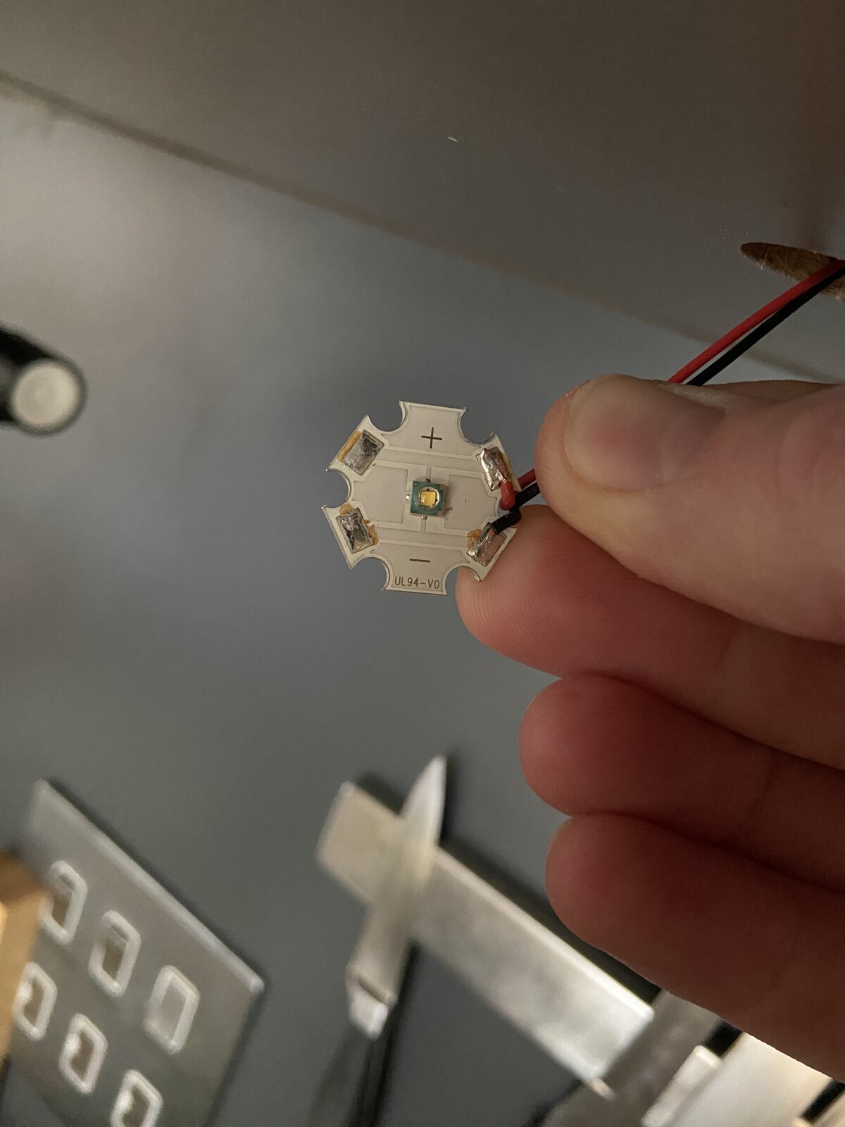 Once removed, removing a circlip separates the holder/diffuser from the led itself. I could solder on replacements easily enough - providing I can find them. The code ul94-v0 turns out to mean they won’t propagate fire, rather than a helpful serial number to identify them.