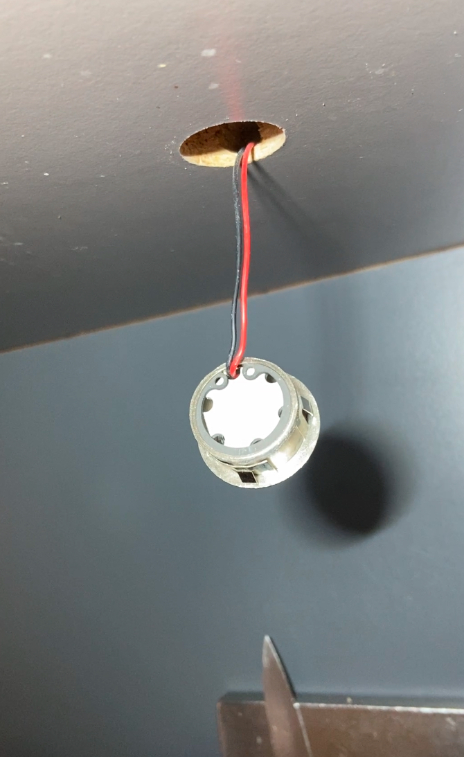 Ok, an update- as this is a neighbours flat it hasn’t been a priority but I was reminded about this and had another look. So it turns out the Led downlighters aren’t glued into the shelf bottom as suspected, but just pressed in and can be carefully removed by inserting a knife into the gap and gently levering one side at a time.