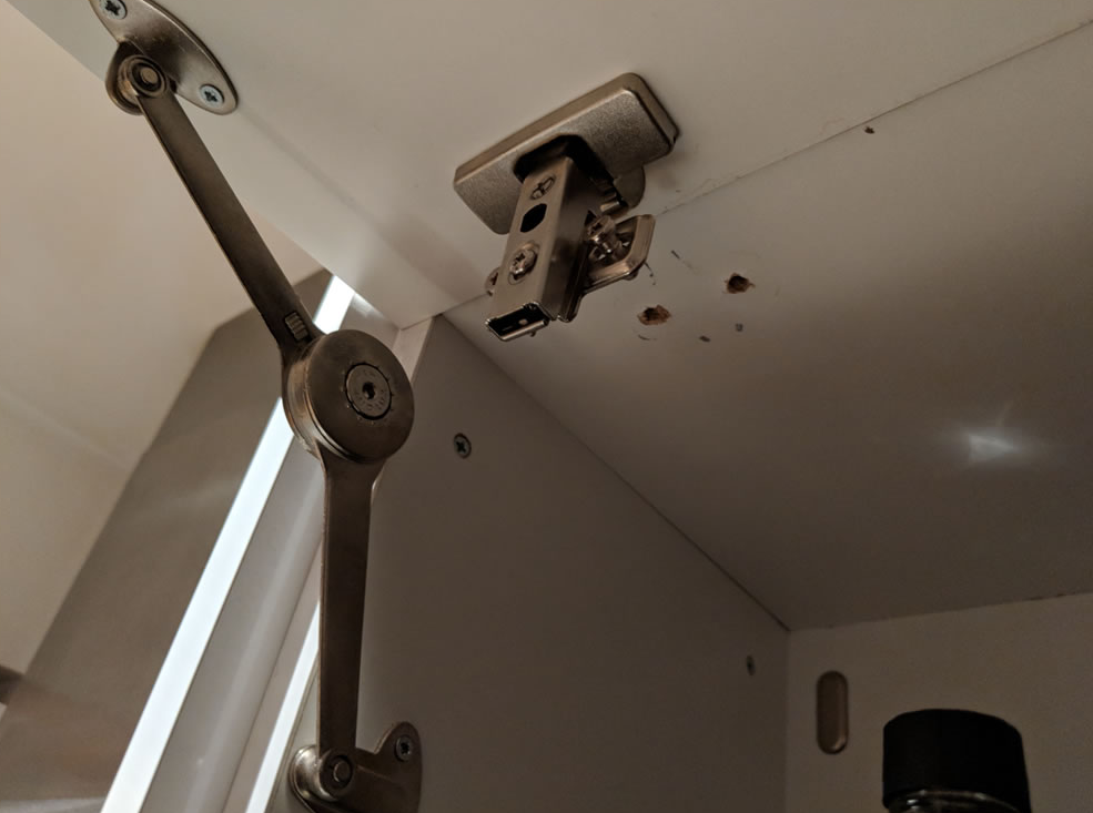 Where the hinge attaches to the carcass, it has ripped out of it's screw holes.