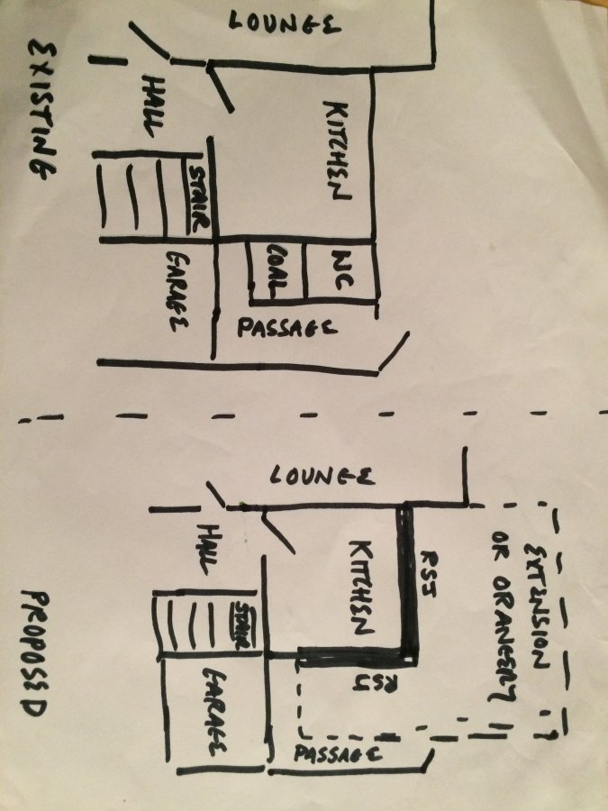 Widening will involve the removal of the coal hole/outside WC, will need a steel the whole length as it's a supporting wall.