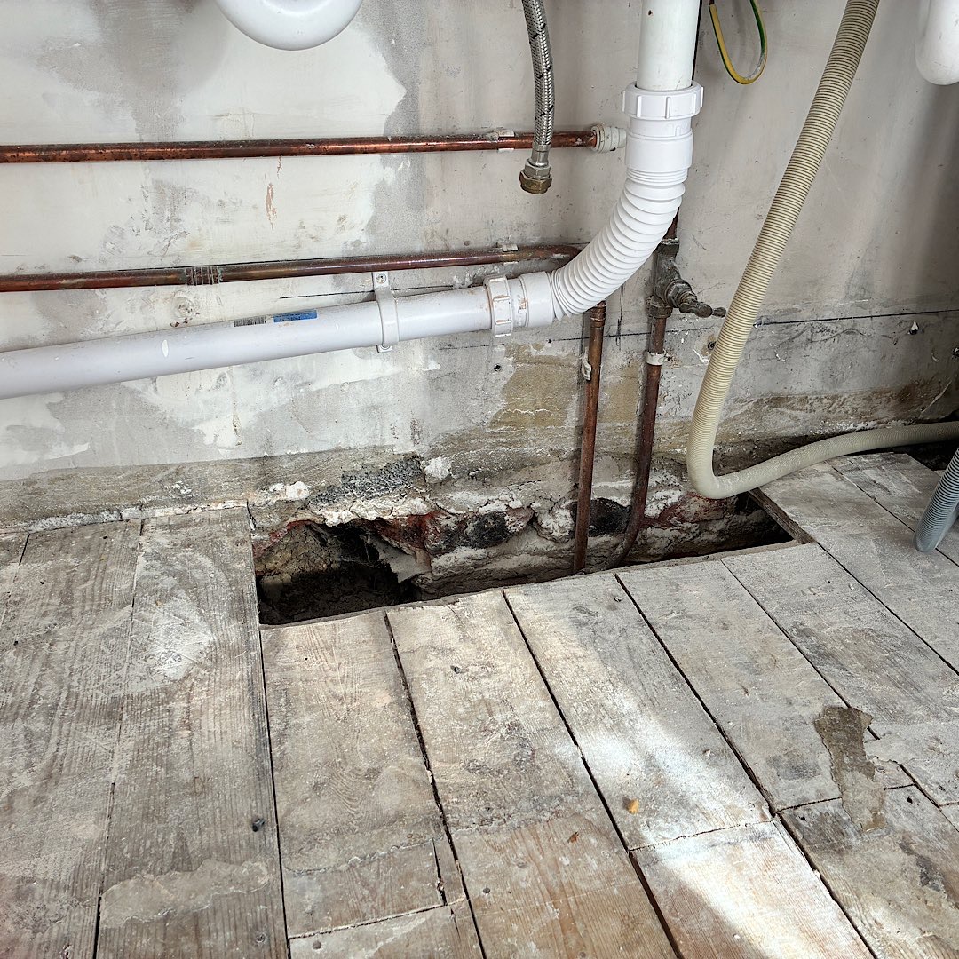 I'll be redoing the flooring in my kitchen soon and I have some gaps in the existing floorboards where they have been cut/removed to allow for access to services presumably around the perimeter of the room. The previous kitchen installers just nailed 6mm ply over them, which I've removed.