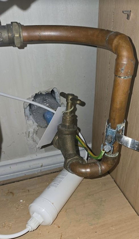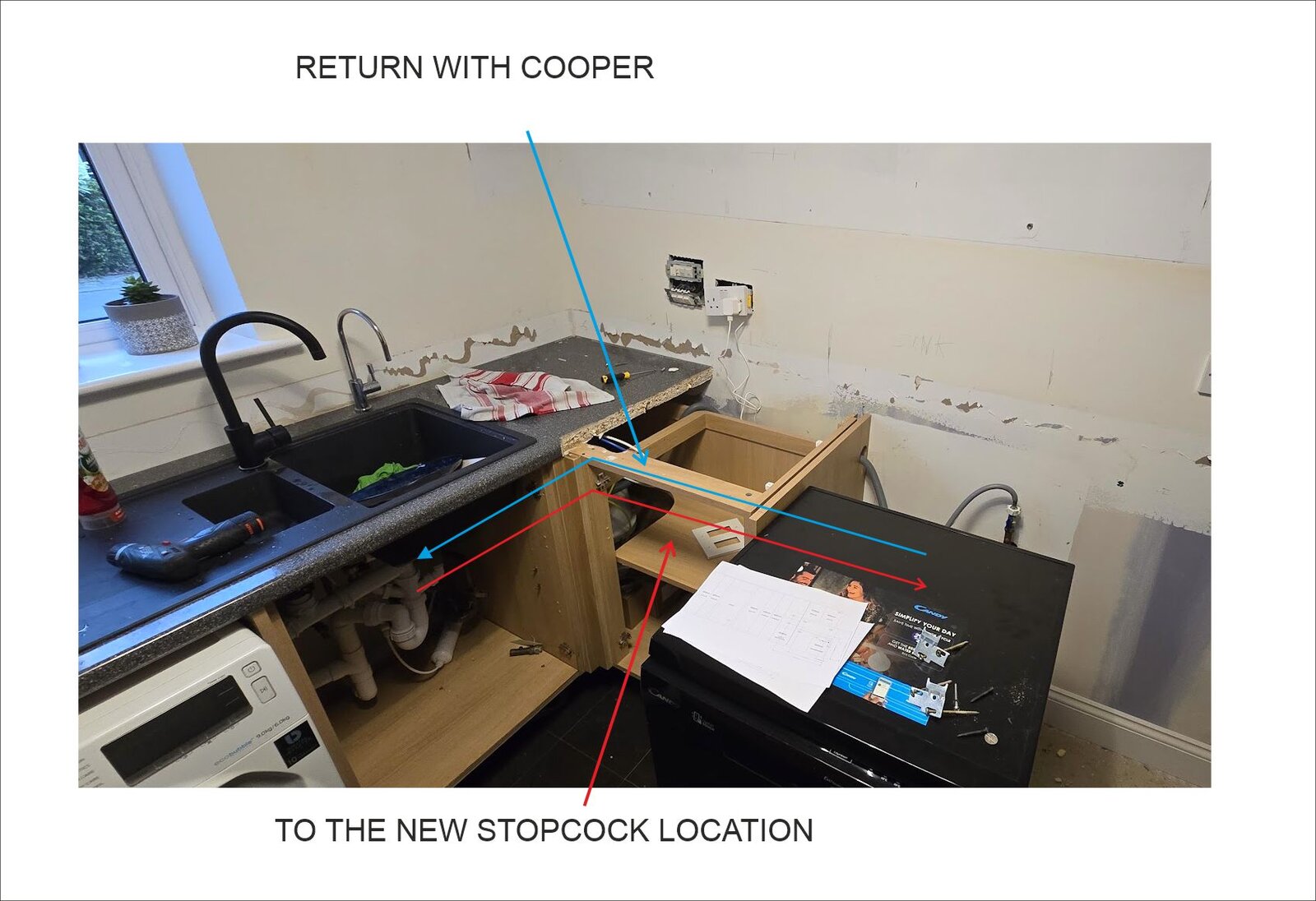 I need to move the stopcock across two walls and return with the mains feed to the original position. The current location of the water mains inlet will be visible and we would like to conceal it inside the wall.
