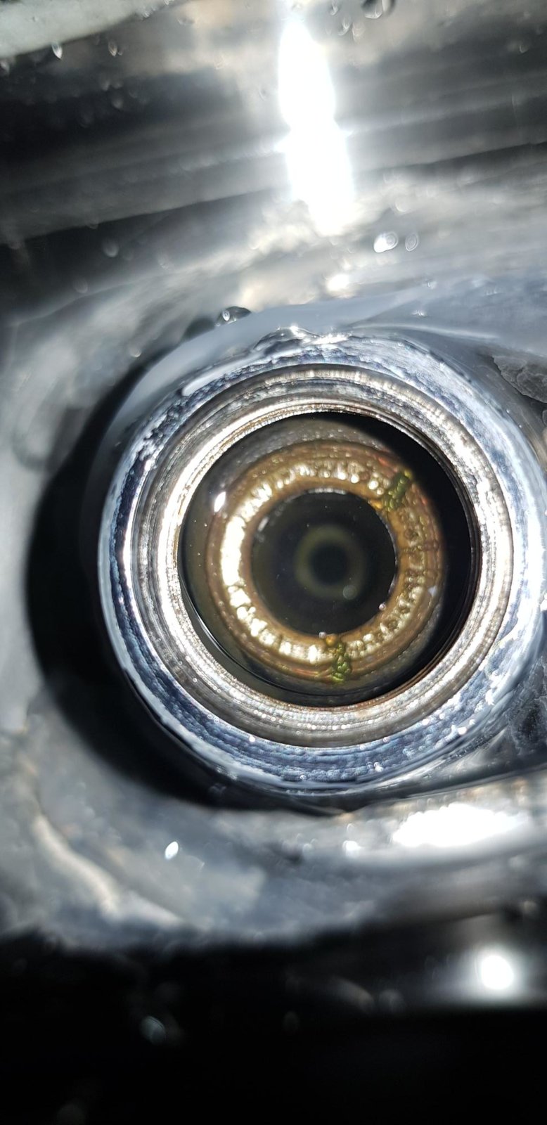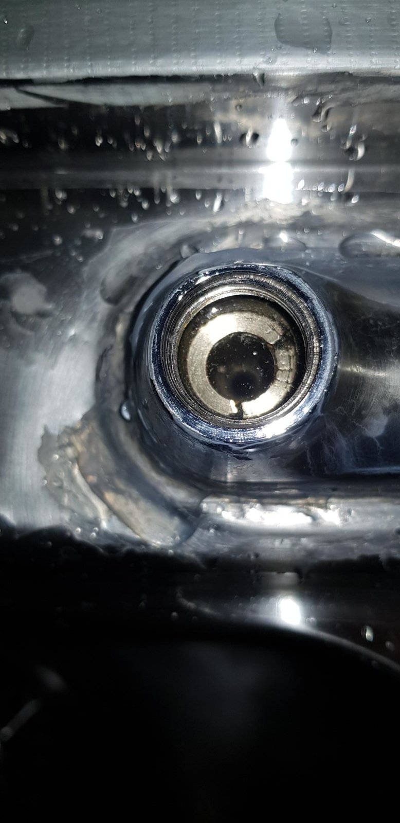 Our kitchen mixer tap is leaking from the hot tap. We have replaced the tap head and cartridge so can rule those out now. We have just tried reseating the tap and you can see the before and after photos enclosed, there appears to be 2 spots which may be cracks we can't tell but it's still leaking.