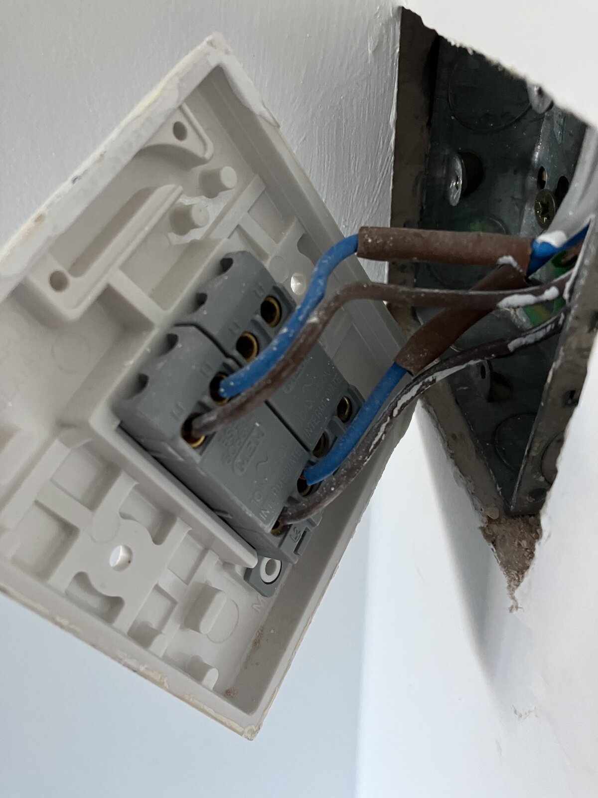 I have removed the 2 hand switch plate which one of the switches already live for the main kitchen lights and expecting to find a rolled up dead end for the under panel not lights.