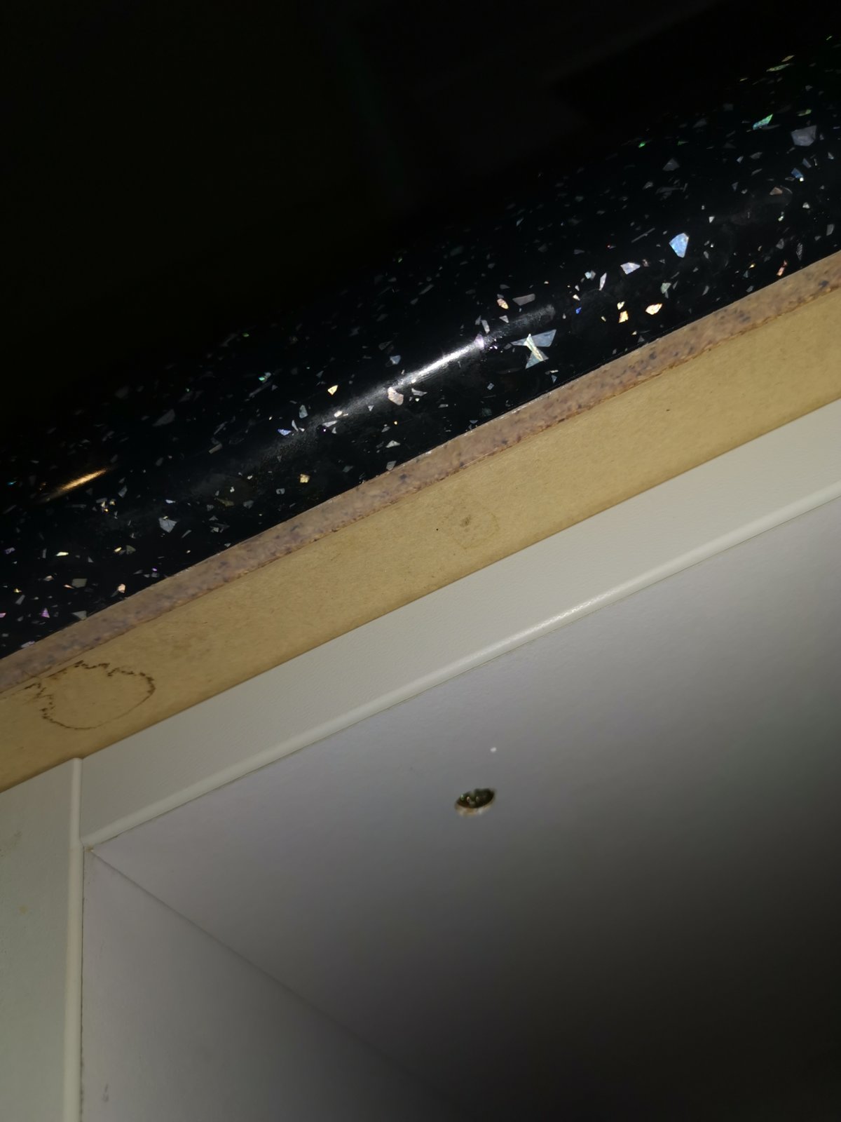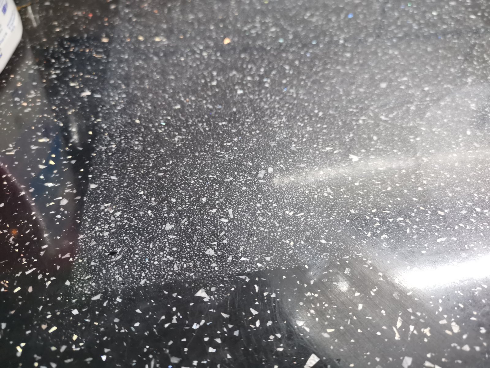 Left a damp plastic chopping board on my worktop for too long. Water must've gotten trapped underneath and it's damaged the surface. Thought this may have been calcium deposits so tried leaving vinegar on this and scrubbing but not worked. Any suggestions?