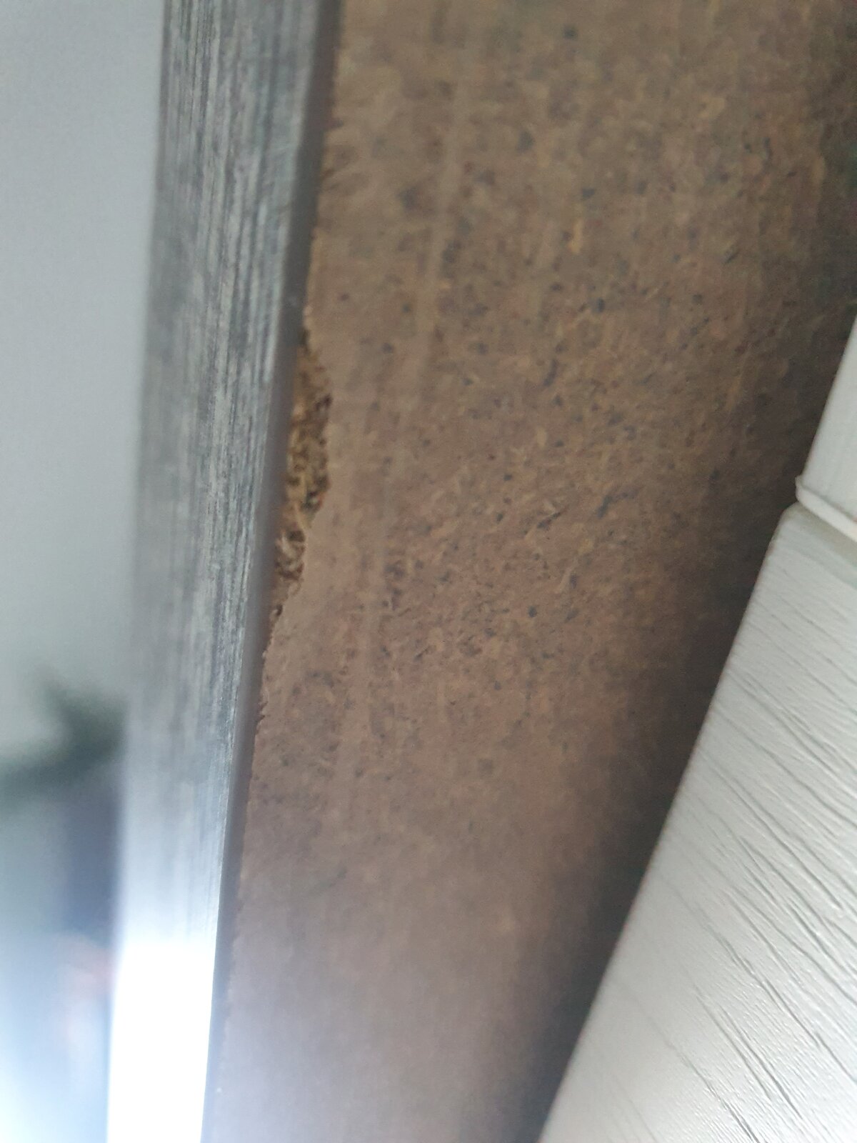 I had a brand new kitchen installed from Wren 9 months ago, on the laminate countertop underneath the edge of the overhang, it seems the wood is breaking up, must be something to do with water. the area never gets overly wet as i just use a damp cloth to wipe down.