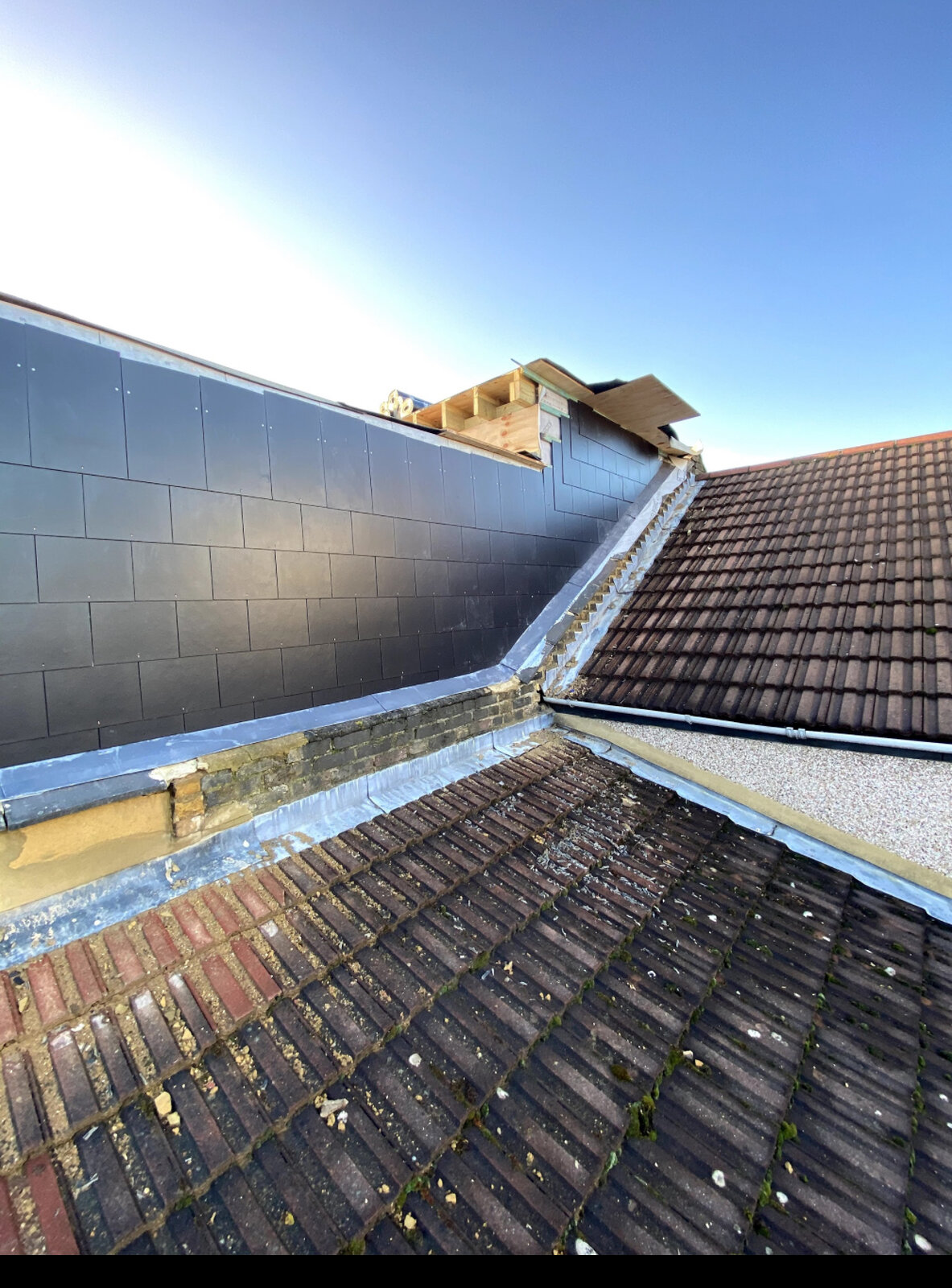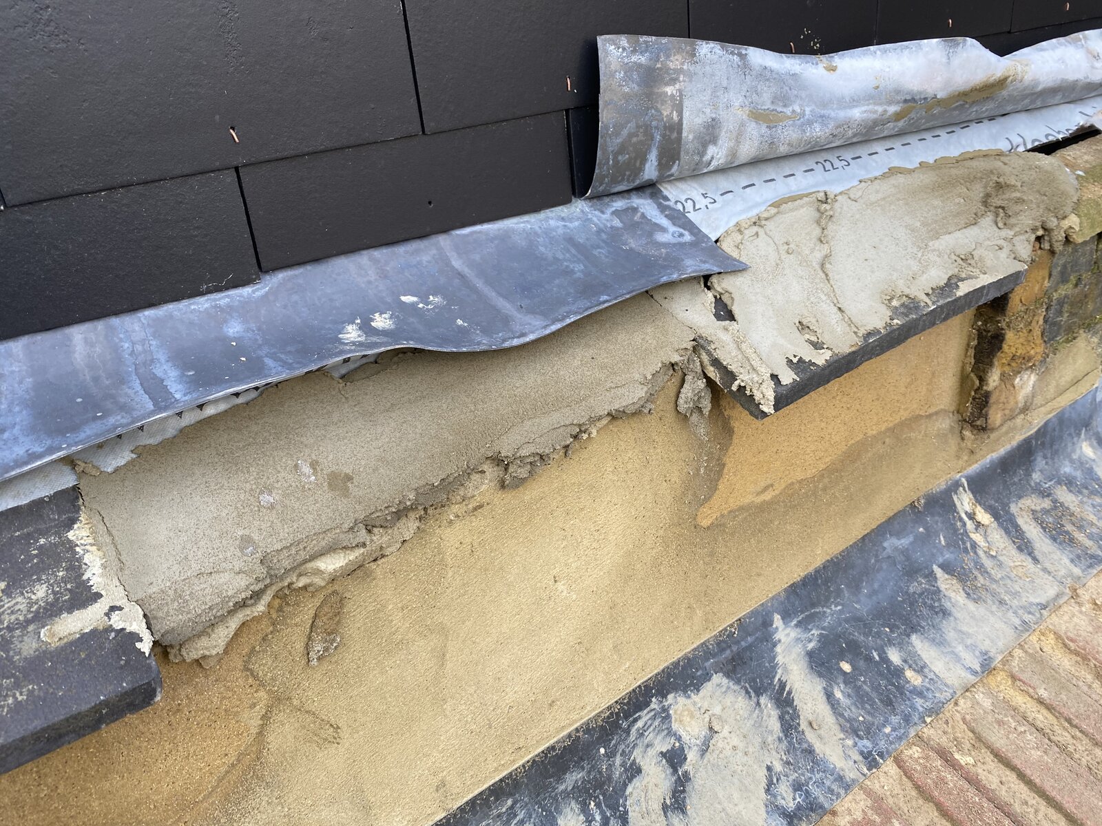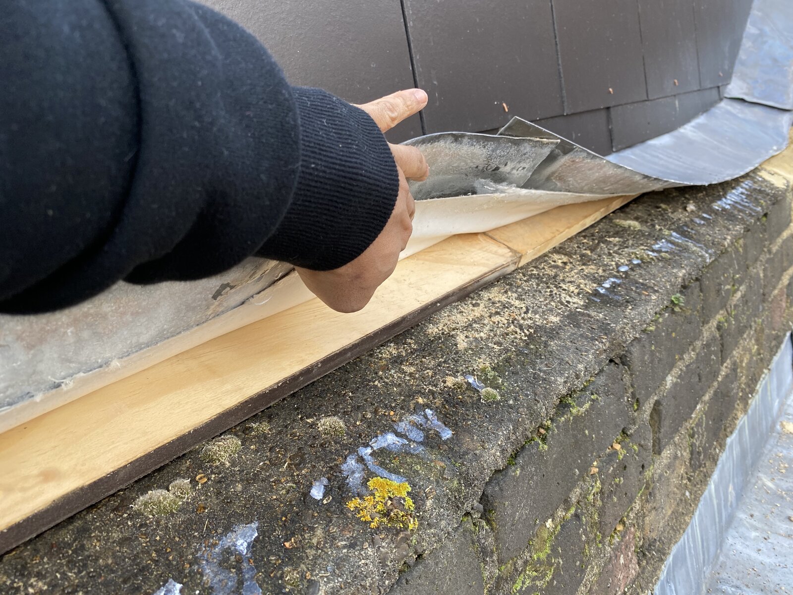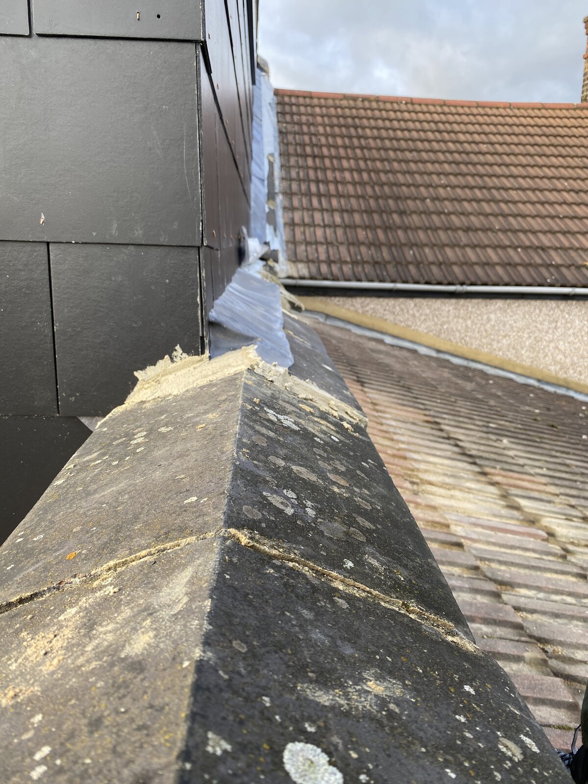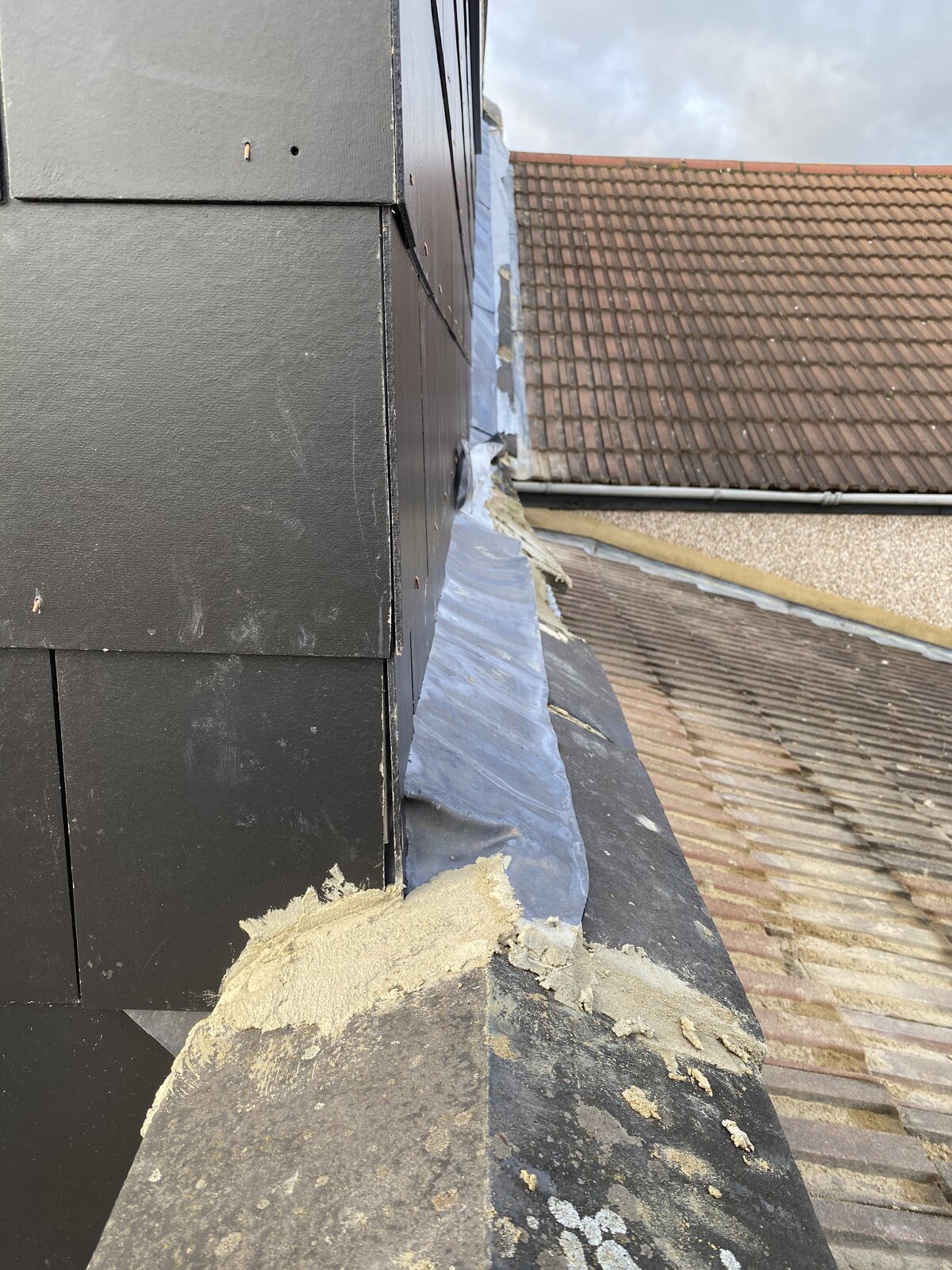 All is good until I decided to take a trip on the roof to see for myself of the work that has been carried out so far. The neighbour has built their wall right up against my wall and thus positioned the lead waterproofing over my parapet for the rainwater to flow away. Is this correct? Should they not have built the wall to their external part of the wall rather then the internal part which buts up against our wall?