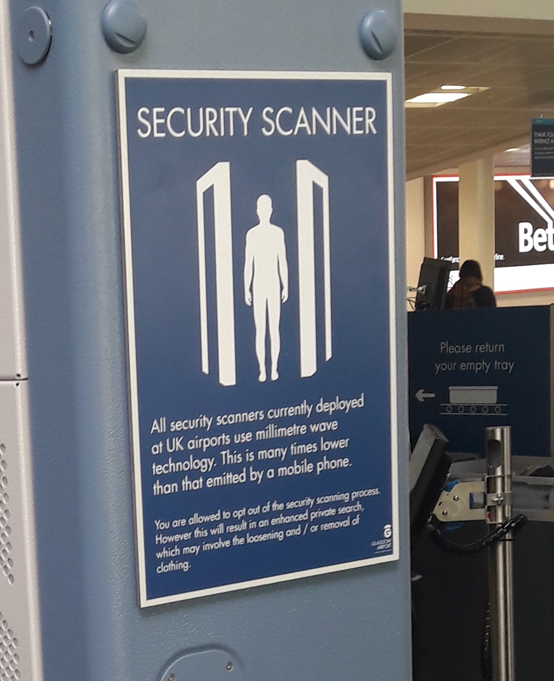 I think that the sign is supposed to allay any "death ray" fears amongst (Daily Mail reading) travellers. I did not raise it with anybody at the airport for fear of subjecting myself to an "enhanced" search.