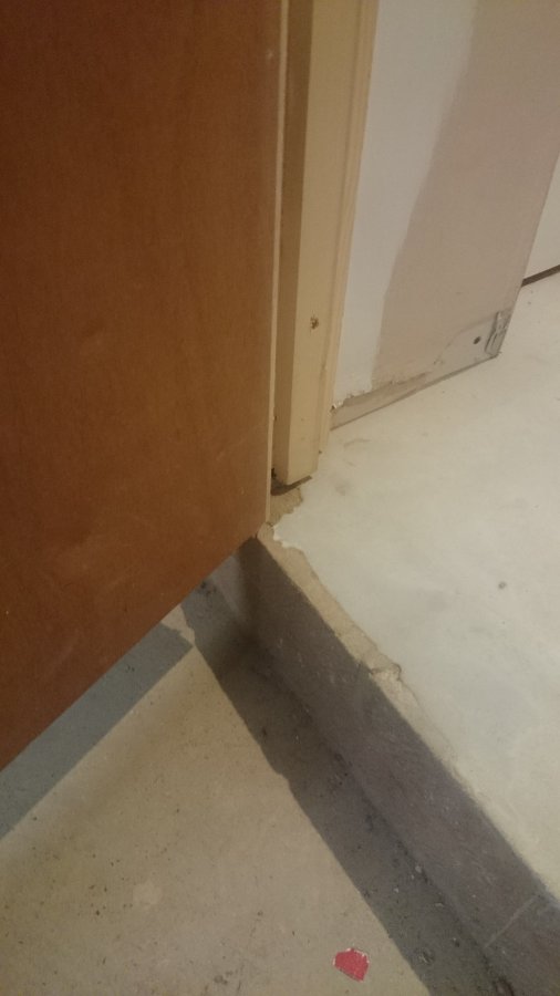 Our builder has gone bust without finishing the fire door and floor so I'm not sure what to do about ending the flooring where the fire door closes.