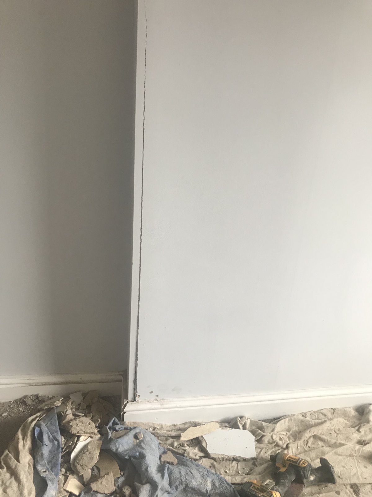 This is a load bearing wall above where the steel went in below. It is the beginning of the bedroom wall and leads into chimney breast.