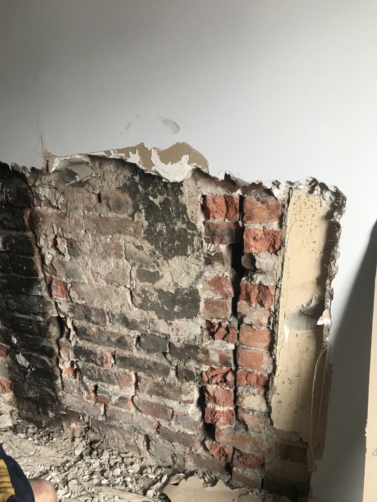 The plasterer also uncovered chimney breast and revealed very poor brickwork here and the lintel is removed. See pics