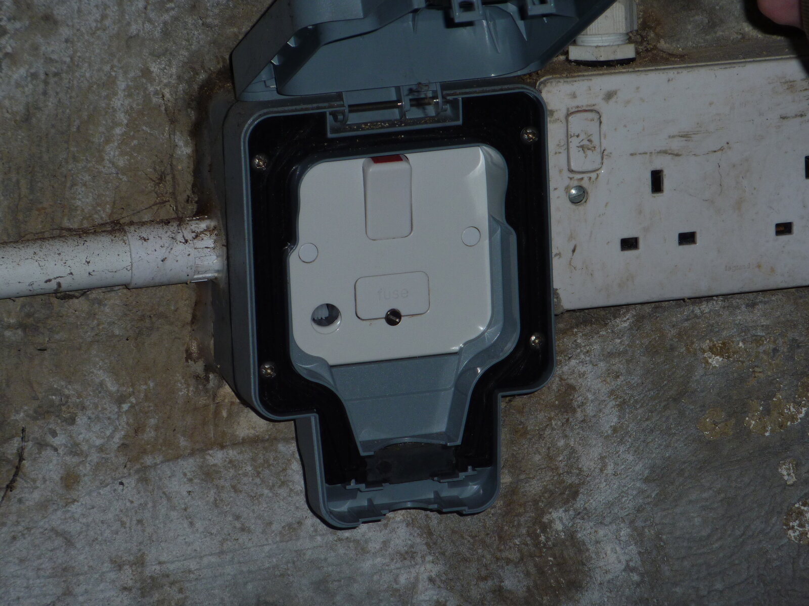 Maybe. However, the main point I made still stands that, since the <whatever it is> is already fed by an FCU, the OP does not really need to 'replace [any] socket with a [second] FCU' - although, if it is a plug-in (and 'plug out'... so I ass-u-me that the “waterproof RCD on the garage roof” is a weather resistant socket which the door opener plugs into.