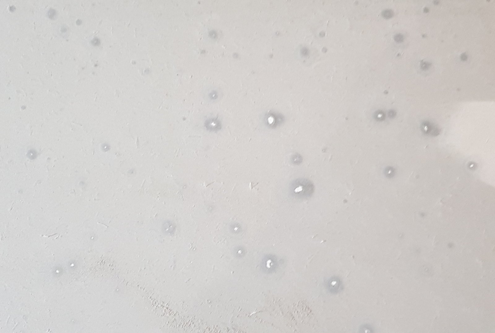 I've had a 4mm-5mm latex screed laid using mapei renovation screed as I was advised this was the best option for a final floor finish as I was only left with about 7-8mm to work with as a microcement floor I had laid had gone wrong. I was charged £2,600 and although I knew this was expensive I put my trust in the person who laid it. It was primed Saturday, laid on Sunday and has had nobody on it bar the entrance area since then. I was looking to get the floor sealed but I have 100's if not 1000's of dark grey spots that when you sand them have a white powder underneath (see pic). Also the UFH has been off but there is some small cracking already.