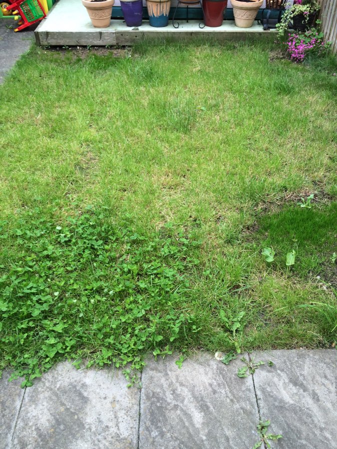 back garden hasn't had much TLC, been to busy in the house, I had some big weeds spoke to a bloke in a garden centre he recommended Roundup, which got rid of the weeds but destroyed the grass around it, put some new seeds down a couple of weeks ago, been watering the grass around the same time every morning