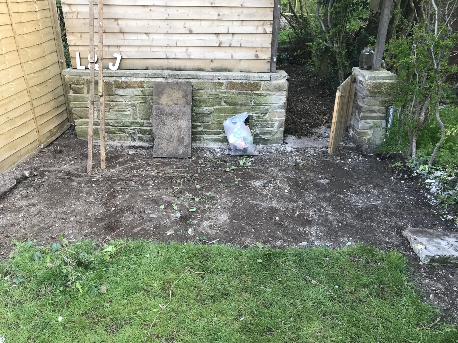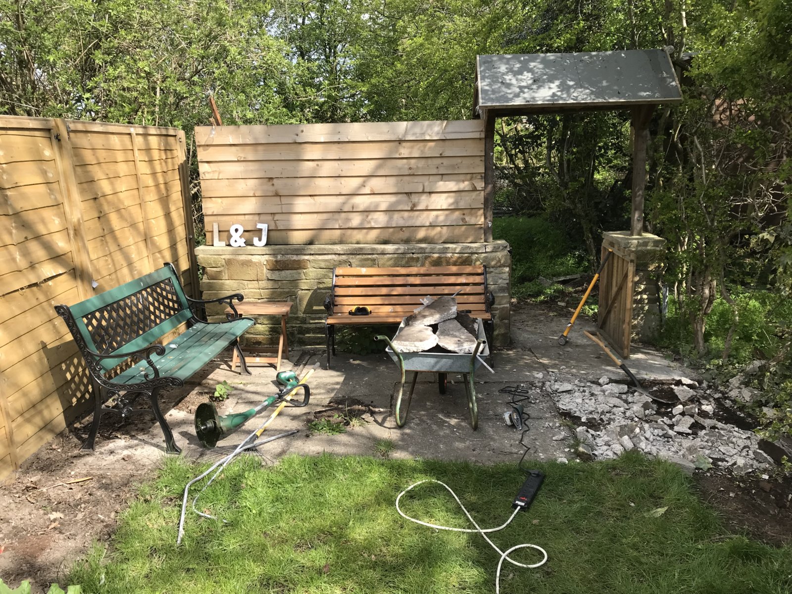 I’ve a small patio area at the end of the garden which was reinforced concrete slabs, most of which had broken away and we’re generally untidy.