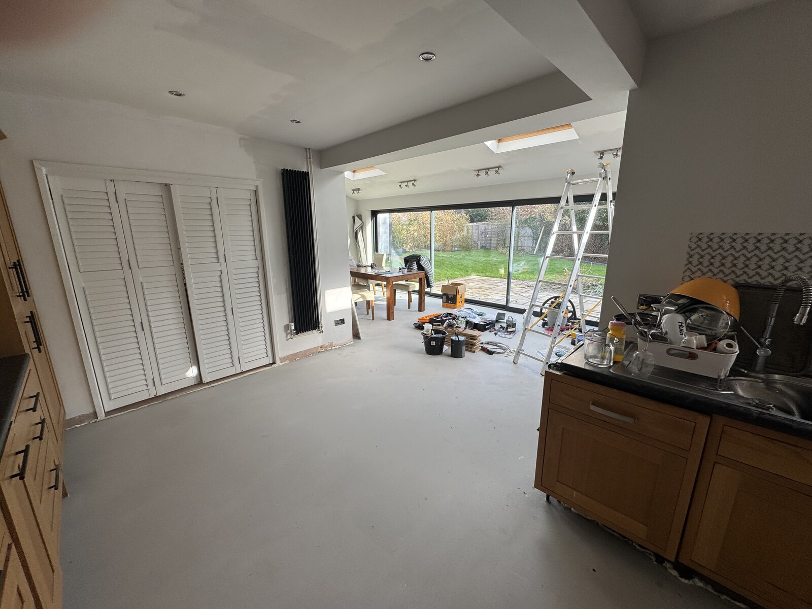 Advice needed - We have installed large sliding doors and recently laid a SLC for large 1m tiles. We have a slope drop of 12mm over the 6m distance from left to right and there is approx 10mm to the edge of the sliding doors frame (12mm to top of the frame on the left that drops to 22mm on the right side of the room), we are wanting to install UHF on the left where we have a kitchen island with the largest drop, but this will leave a insulation mat lip of 6mm after 3m as we only want to cover 3m in UFH. Question, should be just lay the UHF and then tile the whole area even with the 6mm lip or feather the lip into to the slop or cover the UHF 3m section with SLC and feather into the slope before tiling? Any advice would be appreciated.