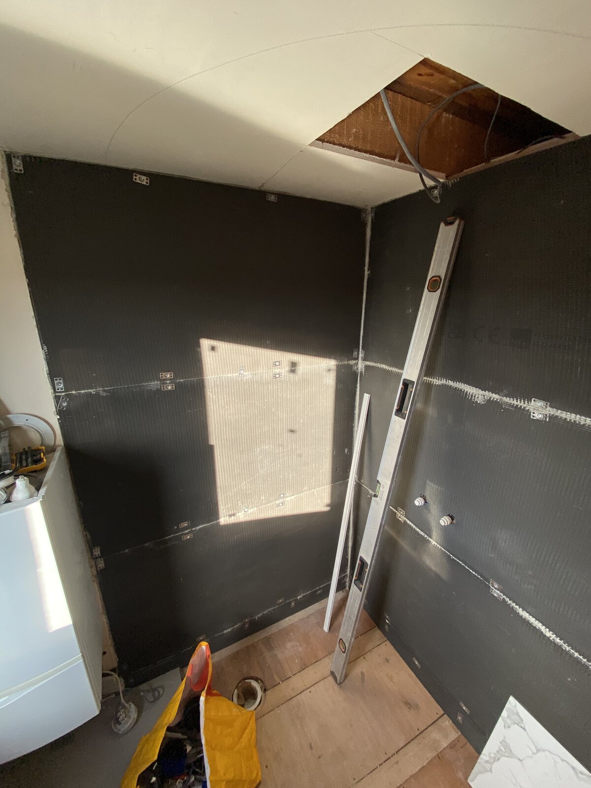 The boiler will be in a cupboard so no need to tile there in case anyone is curious.