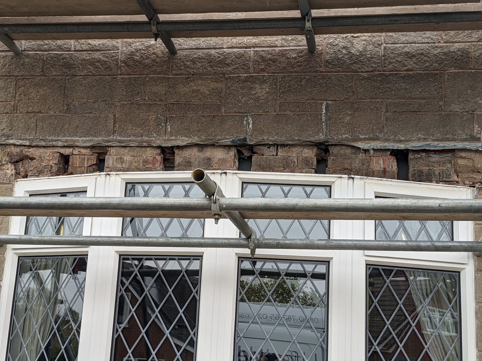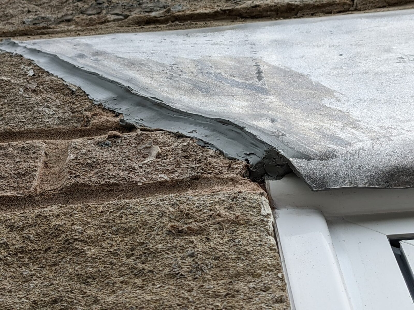We were expecting the void above the window to be filled (but it wasn't) and the lead seems too long to be one run at about 3m? Wouldn't it be better to use stone to fill the void, match the facade and remove the requirement for the lead. I should also mention the bottom of the lead isnt level either
