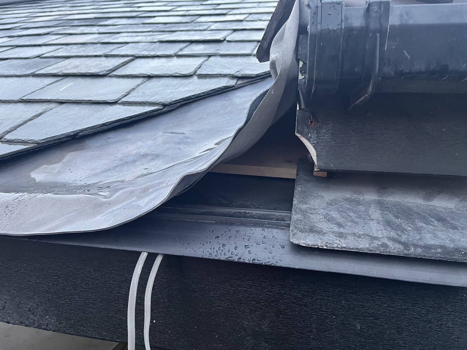 We are having an extension built and I have concerns over the end of the valley. The roofer is leaving the lead valley unsupported to the right of the photo and wants me to install facia board to cover up this detail.