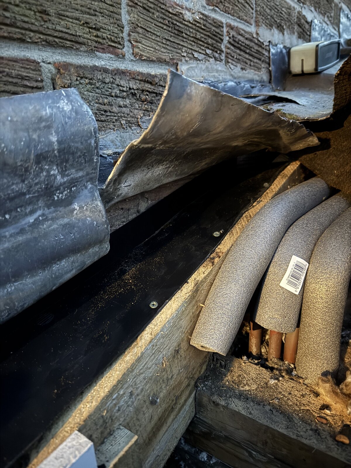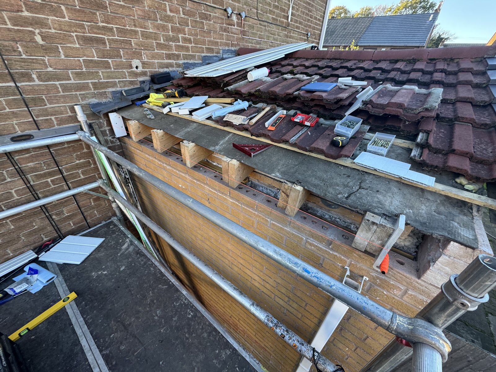 I’ve notched it for now, using a modified section of felt support tray to fashion a short gully down to the fascia to try and help until a proper fix is done (tray does run down toward the wall despite how it looks in the image!) I also had to add a section of replacement membrane underneath the felt because the cowboy that built it decided not to check pipework before fitting and the hot water and central heating pipes enter the wall in the corner, with the bend so high it’s damaged the felt…