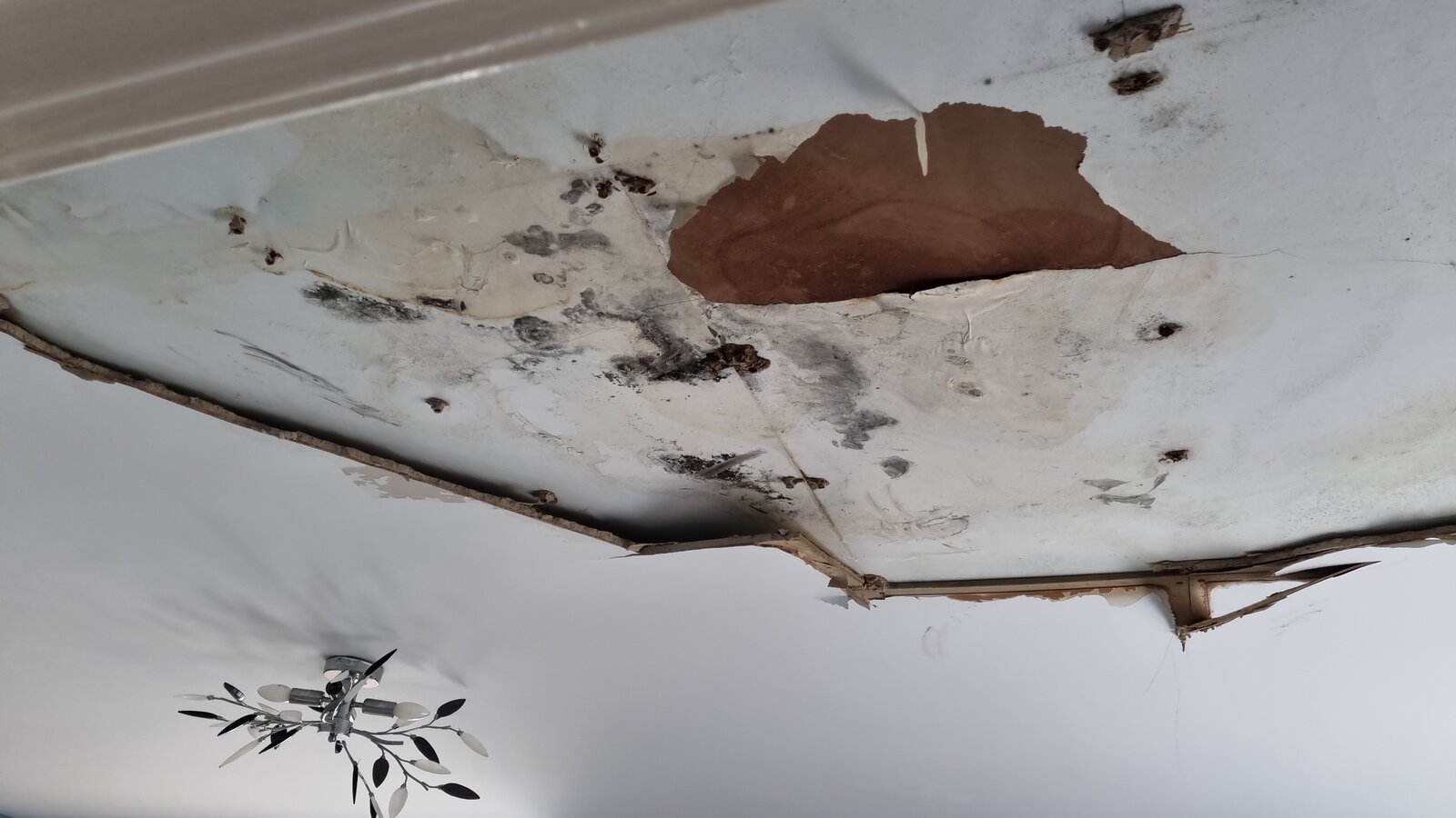 We moved to a house elastic year and after a couple of months the plasterboards in the lounge ceiling fell off, we realised there was an ongoing leak for ages in the upstairs bathroom, which the previous owners hid from us.