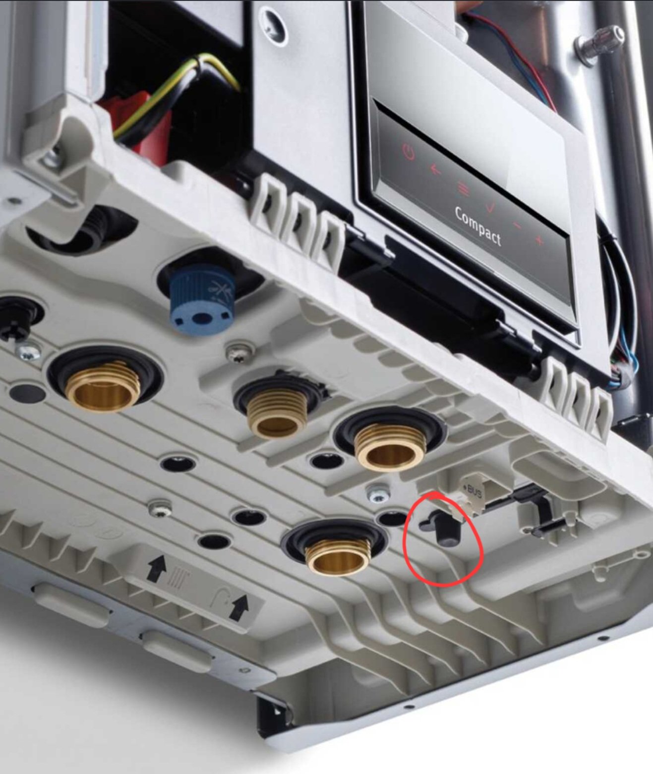My Glowworm boiler drips water from the part circled in red. The pressure eventually drops to 0.3, which triggers an error code. I refill to 1.4, and over the course of around 24 hours, the pressure drops to 0.3 again. All the while dripping water.