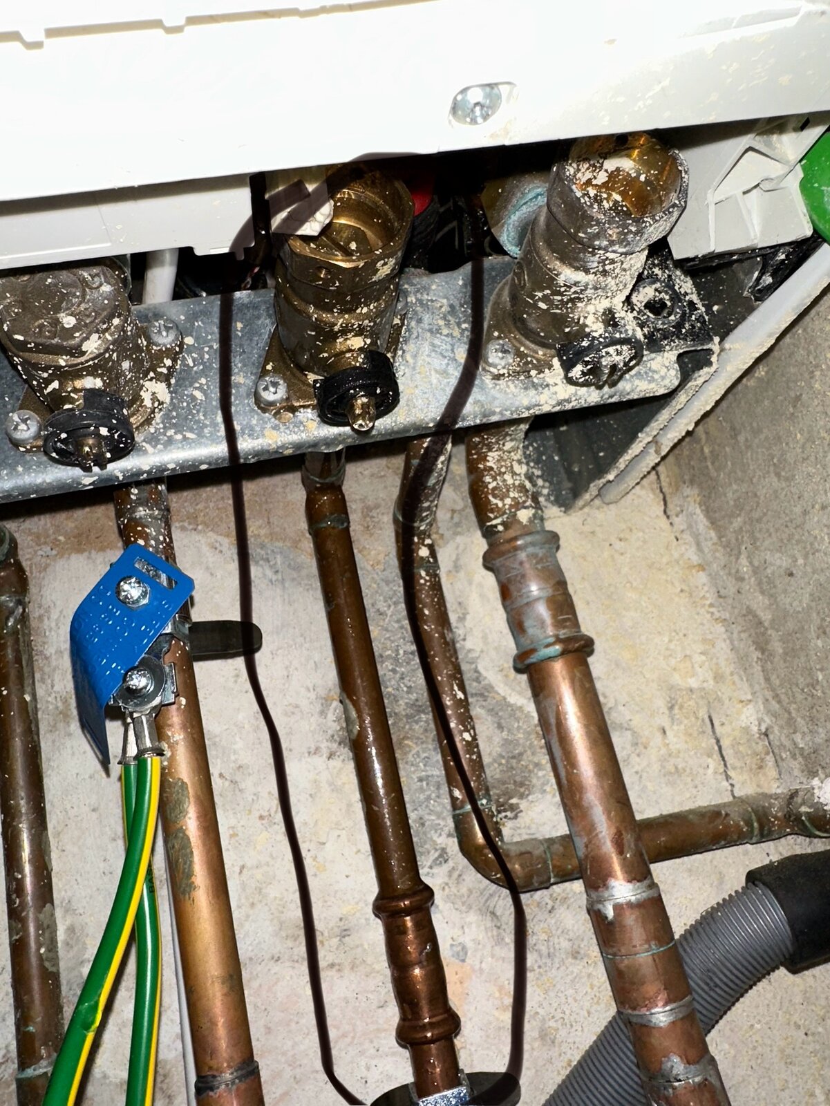 House has been completely renovated, some of the pipework changed but the boiler stayed. This was due to the hot water/radiators working when we viewed the property so didn’t see a point to spend extra money which seemed unnecessary. At times when certain work was done I.e removing the old ceiling the boiler was not covered and I’m assuming lots of dust/debris has fallen inside the boiler. This could have caused damage.