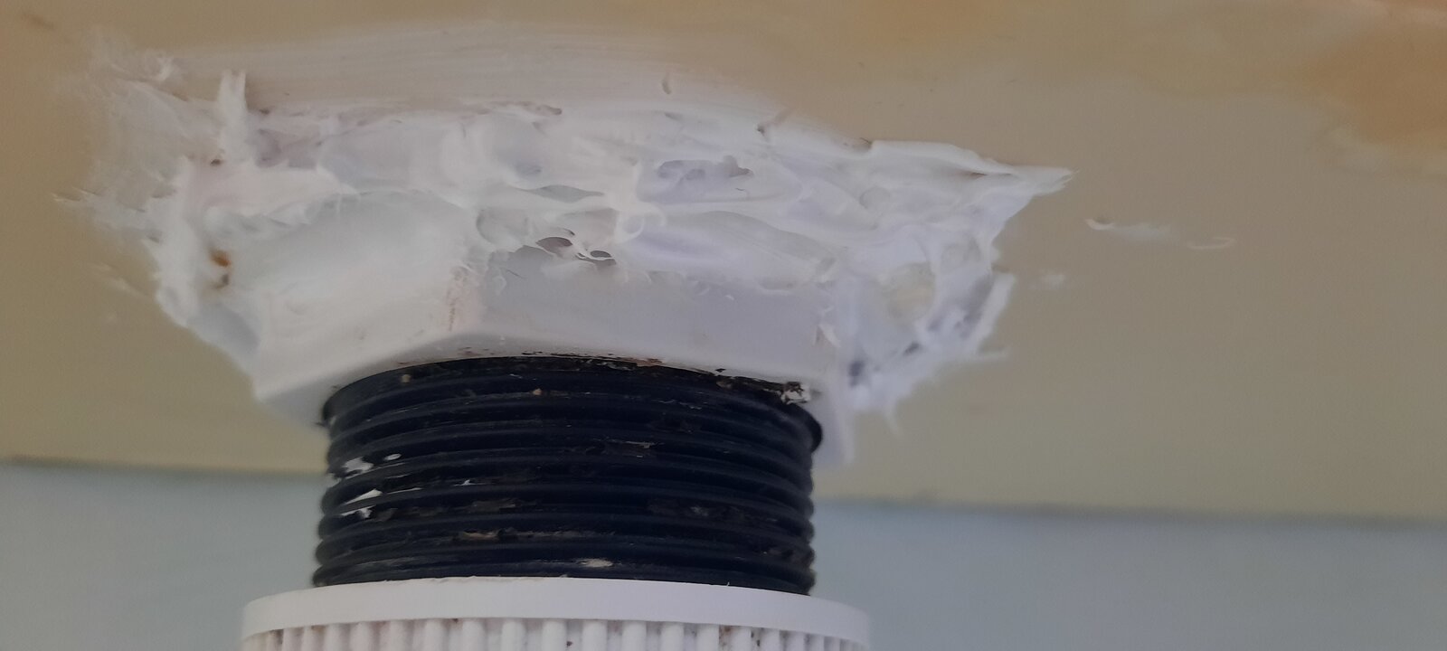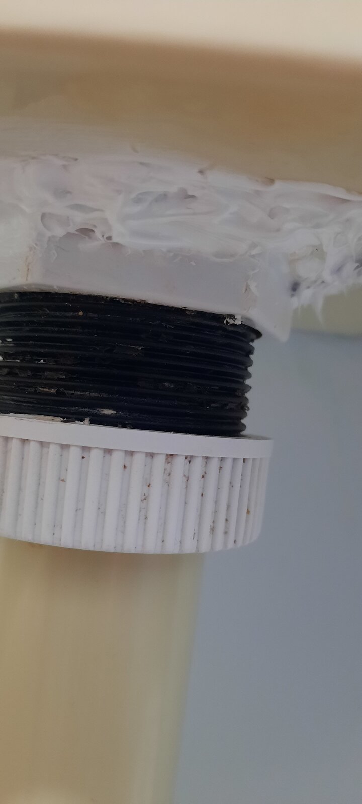 The plumber had used a tiny amount of white compound to seal the thing. Obviously the did a shoddy job