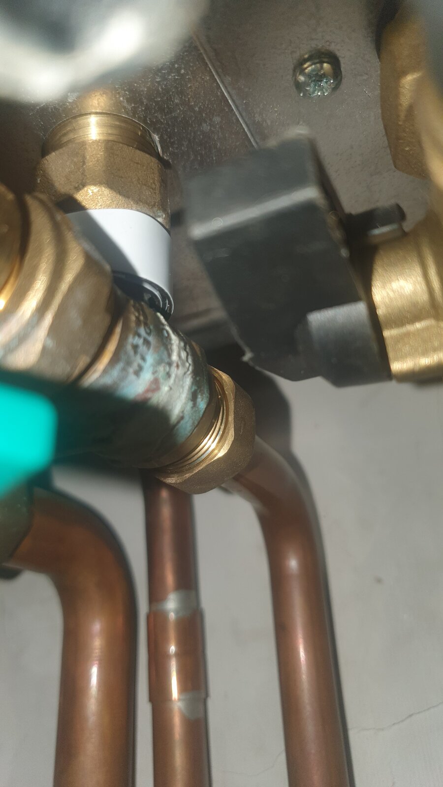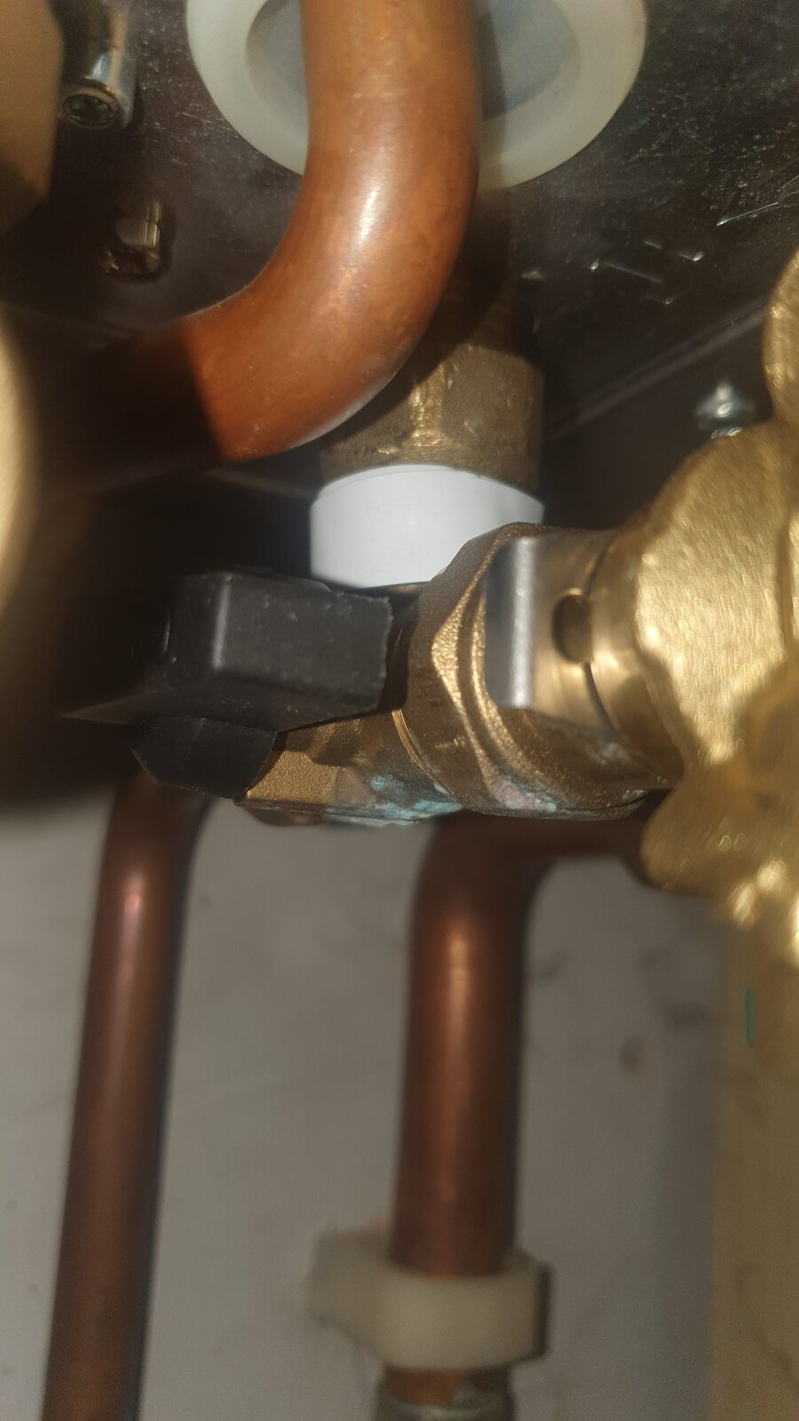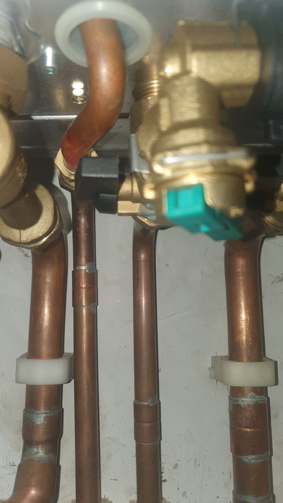 Hi we have been having issues with our boiler the codes 110/125 come up when trying to run hot water. The heating however works. We have bled radiators to release any air etc but the pipes are tinkering when heating is on,and on closer inspection I have found a leaking part on the boiler pipes and the pipe has discoloured, I wanted to check if it needs a plumber to fix and if the black lever is in the right place before we get someone out. The leak is coming from the section above where I have put the white tape thanks all.