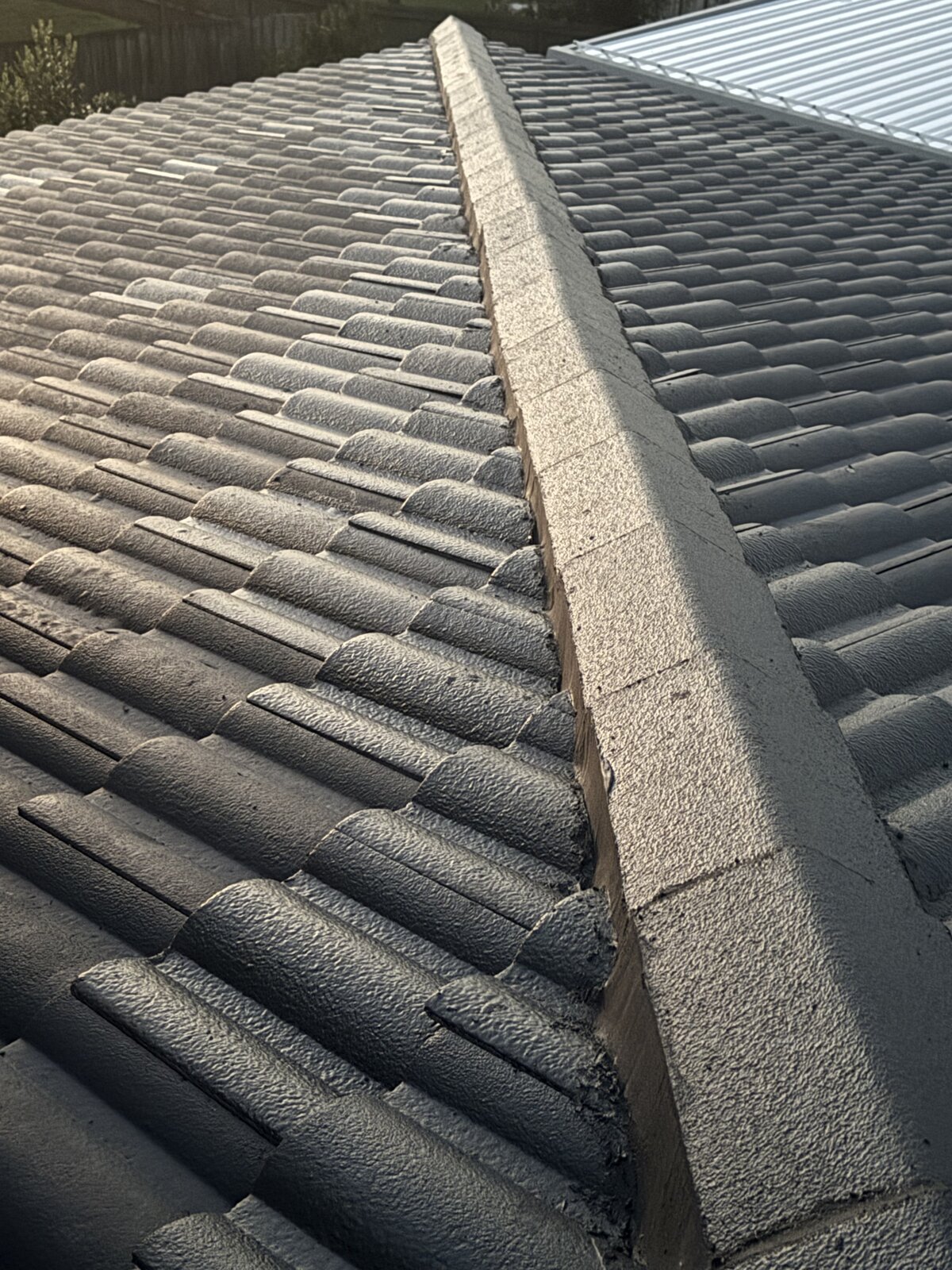 I have a concrete tile low pitch (15’) roof , the roof hip beam is made of steel and it sits slightly proud of where it should be which means concrete tiles each side of it don’t sit too well as they approach the ridge , the ridges mortar in ok but I can see larger than usual gaps on the joins between the tiles each side on some tiles.