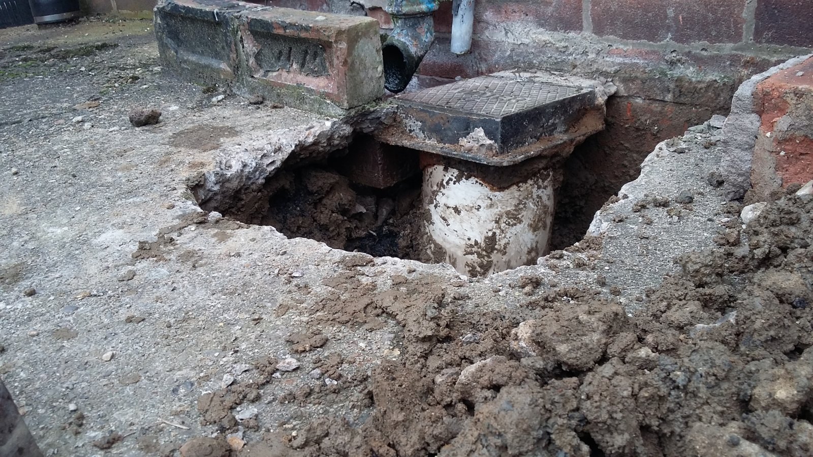 Now I think on, it was blocked up when we moved in. It took a lot of messing to unblock it. I'm guessing soil has been washing into the gulley from this inlet, as there was a big cavity there when I removed the concrete.