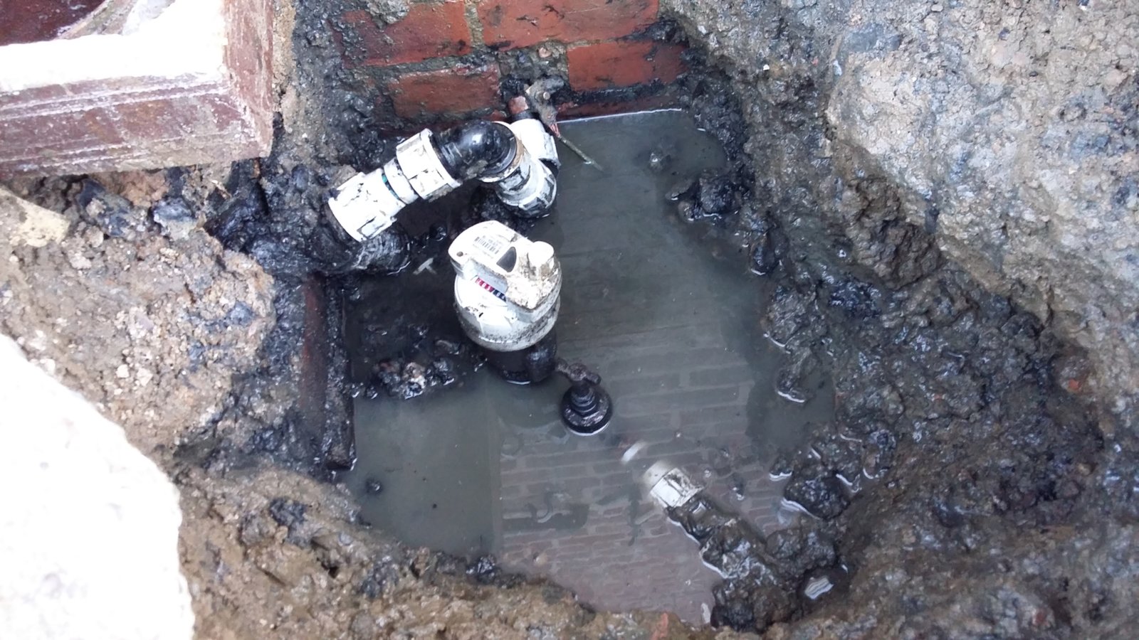 I've just come across a problem while digging my water meter out (we're replacing the lead main). The hole was filling up with water when i got so deep. I was sort of expecting this as the meter itself has been sat in water for over a year (we bought the house last year). Anyway I started thinking I should call the water board to inspect the pre-meter pipework before I expose it so I cant be held to blame for a leak. Then R lass went to the bog and washed her hands. Water started trickling into my hole! Bang next to the meter is a drain gulley. Which everything drains into. I realised if I crouched down at a certain angle I could see into the gulley from my hole!