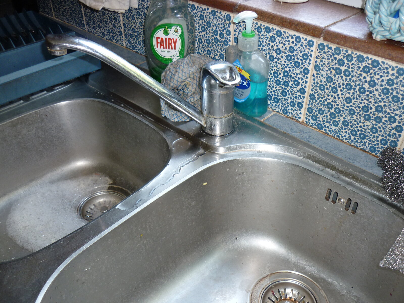 The kitchen sink mixer tap is leaking at the joint between the base and the swivel head body.