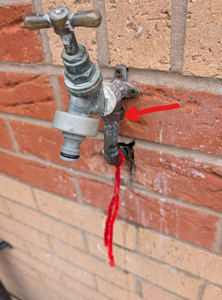 I have an outdoor garden tap that's leaking, the leak is from the nut shown. The water slowly runs out of the nut and down the pipe where the bend is (picture attached with nut highlighted).