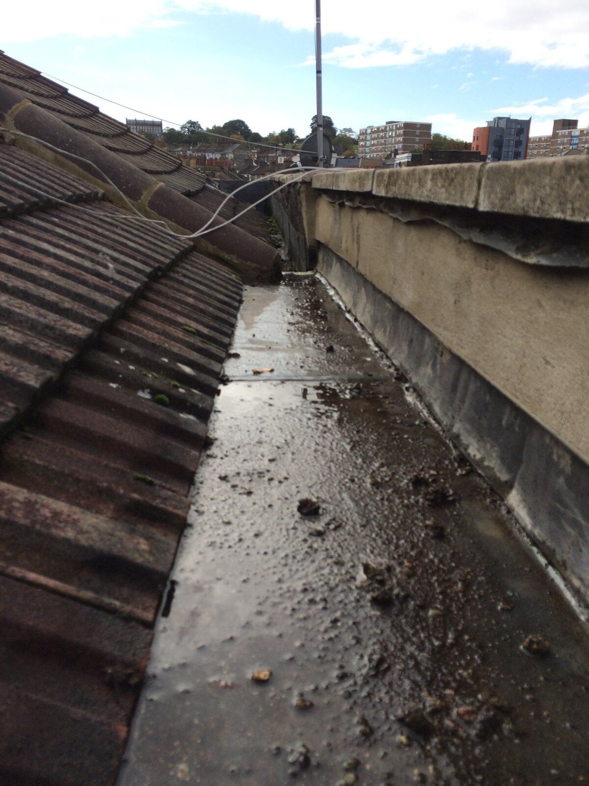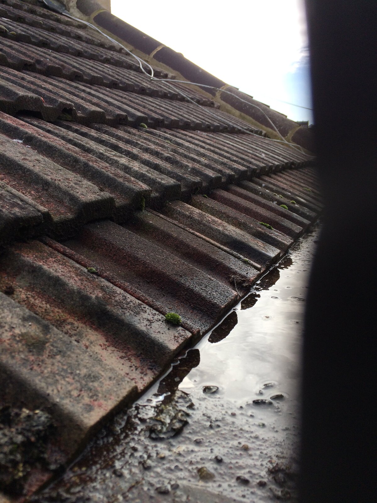 I've had a look at the gutter through a velux window in the roof. I've attached some photos. Sorry if they are not very good. I can get some more, if needed.