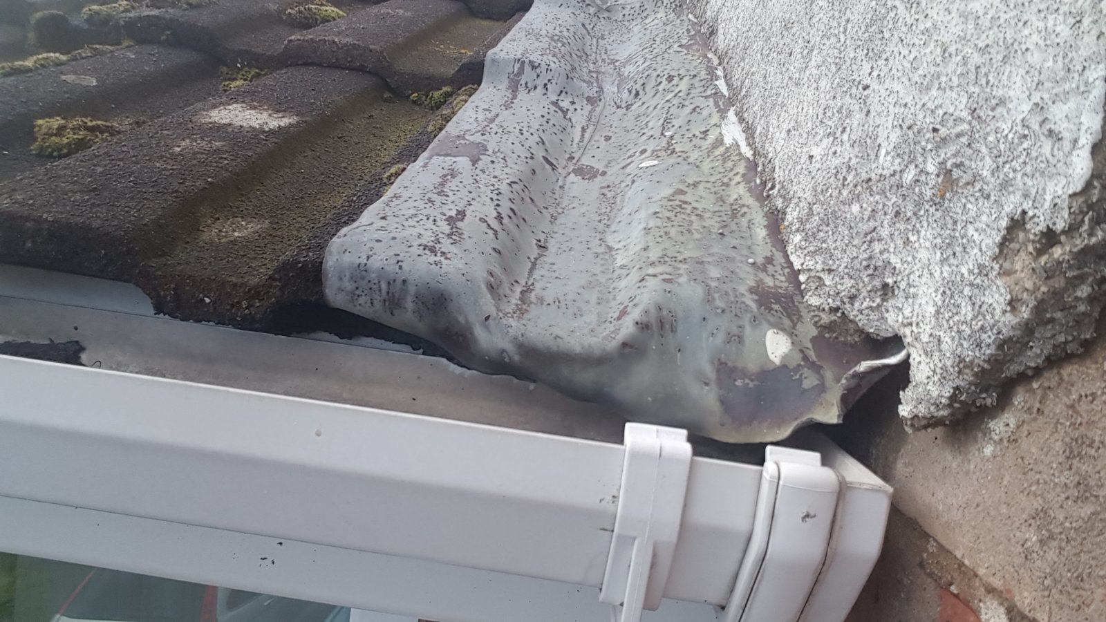 this is the suspect area - maybe made worse by moisture being pulled off the lead by capillary action, and up and over any upstand?