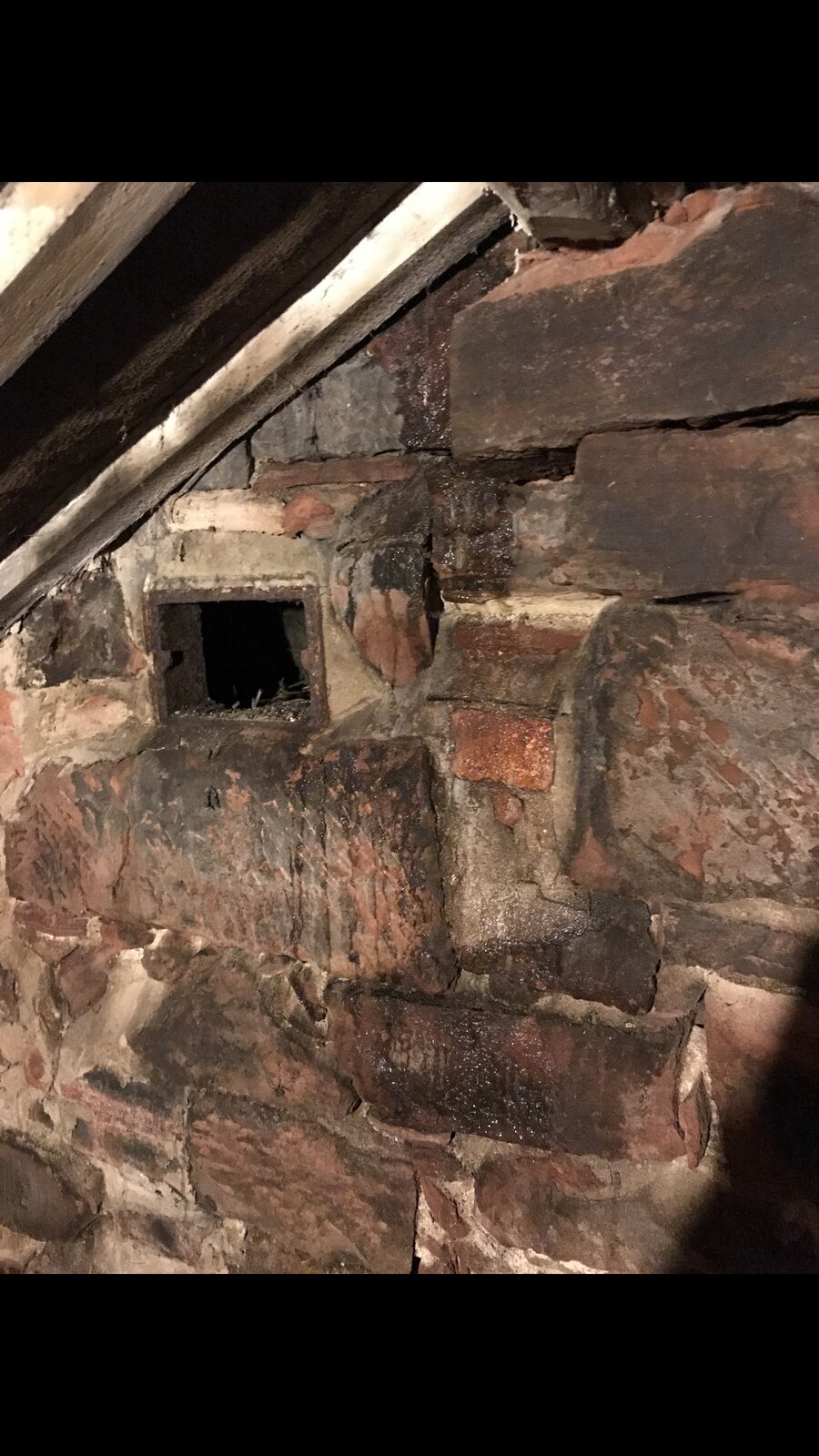 Then I have noticed that in really bad weather water is appearing on the chimney breast in the attic, and believe that it has started to damage the support that is holding up the roof beam. I have contacted the roofer and he has said that he needs to do some more work to the render of the chimney as there is a crack and he believes this is where the water is penetrating. He has also said that he will be able to fix the damage to the support using cement mixed with lime as its sandstone bricks.