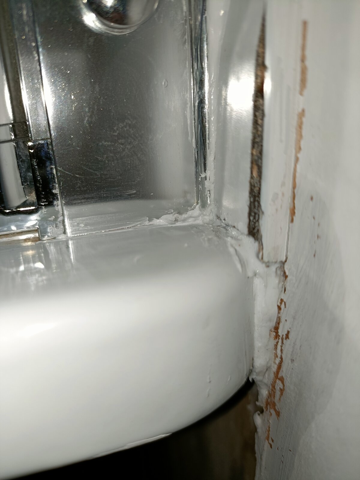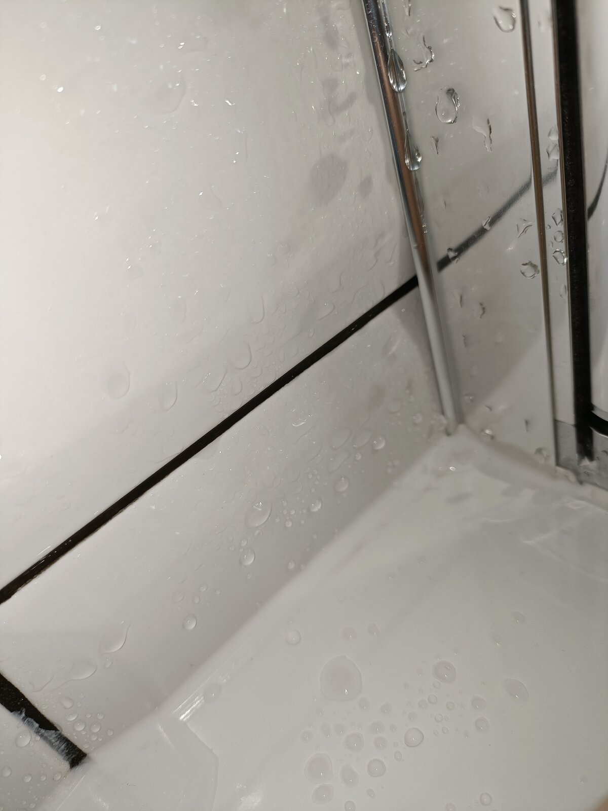 Indeed, I think the tiles and screen may be new and someone has managed to create a route down the back of the silver strip and out the room side at the base