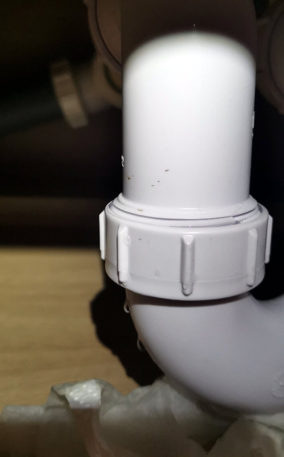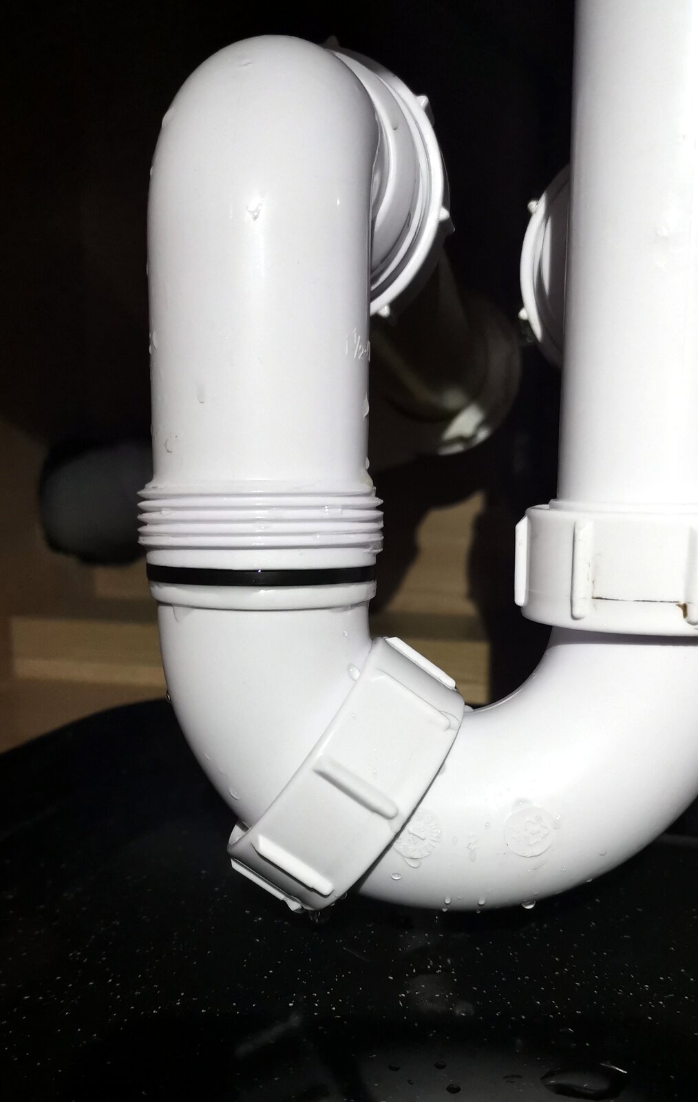 I have absolutely no idea how this is happening but our newly installed kitchen has started to leak under the sink after 2 months. I have unscrewed and re-screwed the connection several times with the black rubber seal in contact fully and yet when screwed on it starts dripping from the left side, and yet this is a new piece and no obscuration in the diameter of the pipe as I have thoroughly checked. So why oh why is this leaking ?